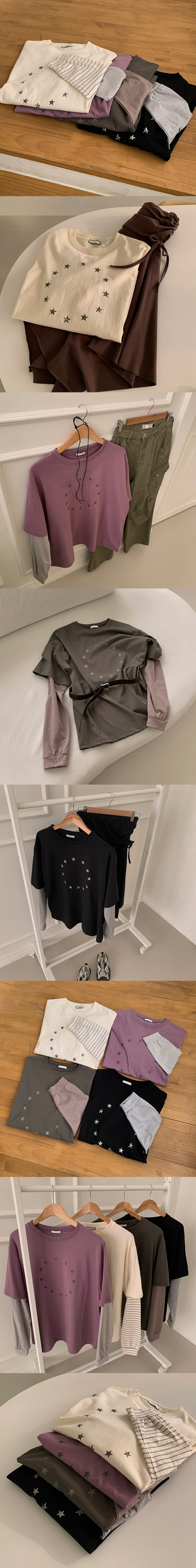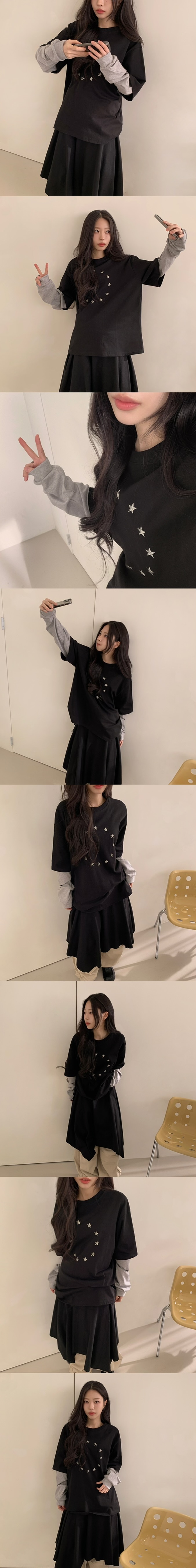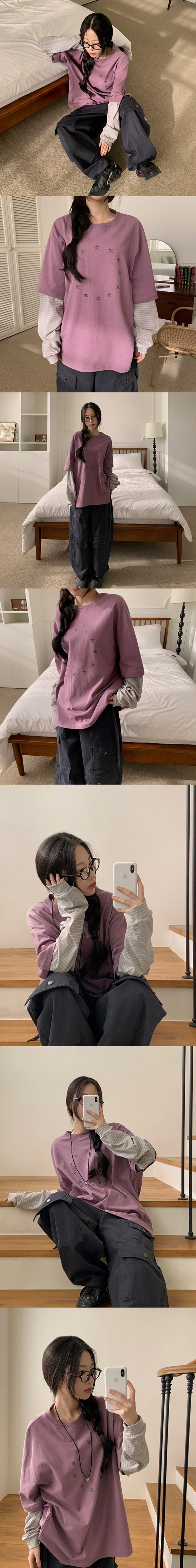 【11/1截單!首批優惠價預訂】韓國星星寬鬆假2件長袖TEE(4色)
