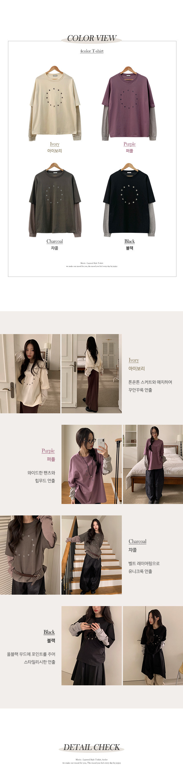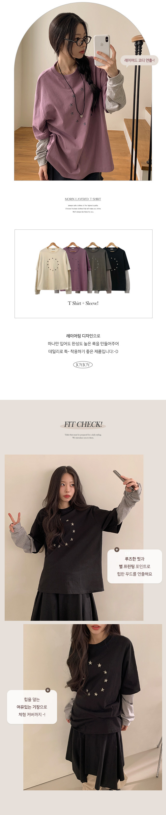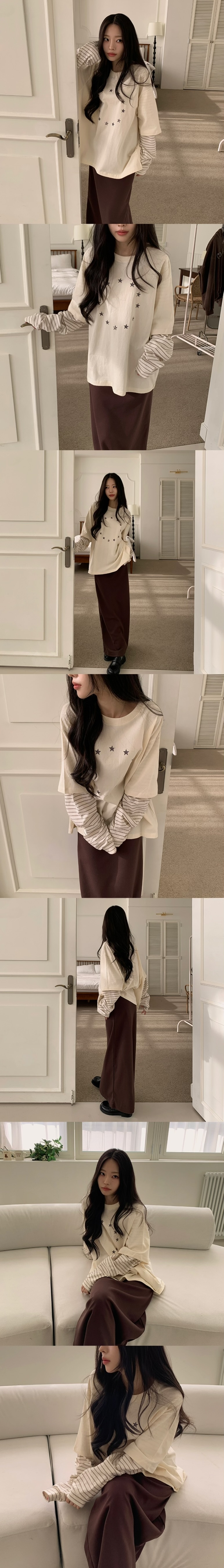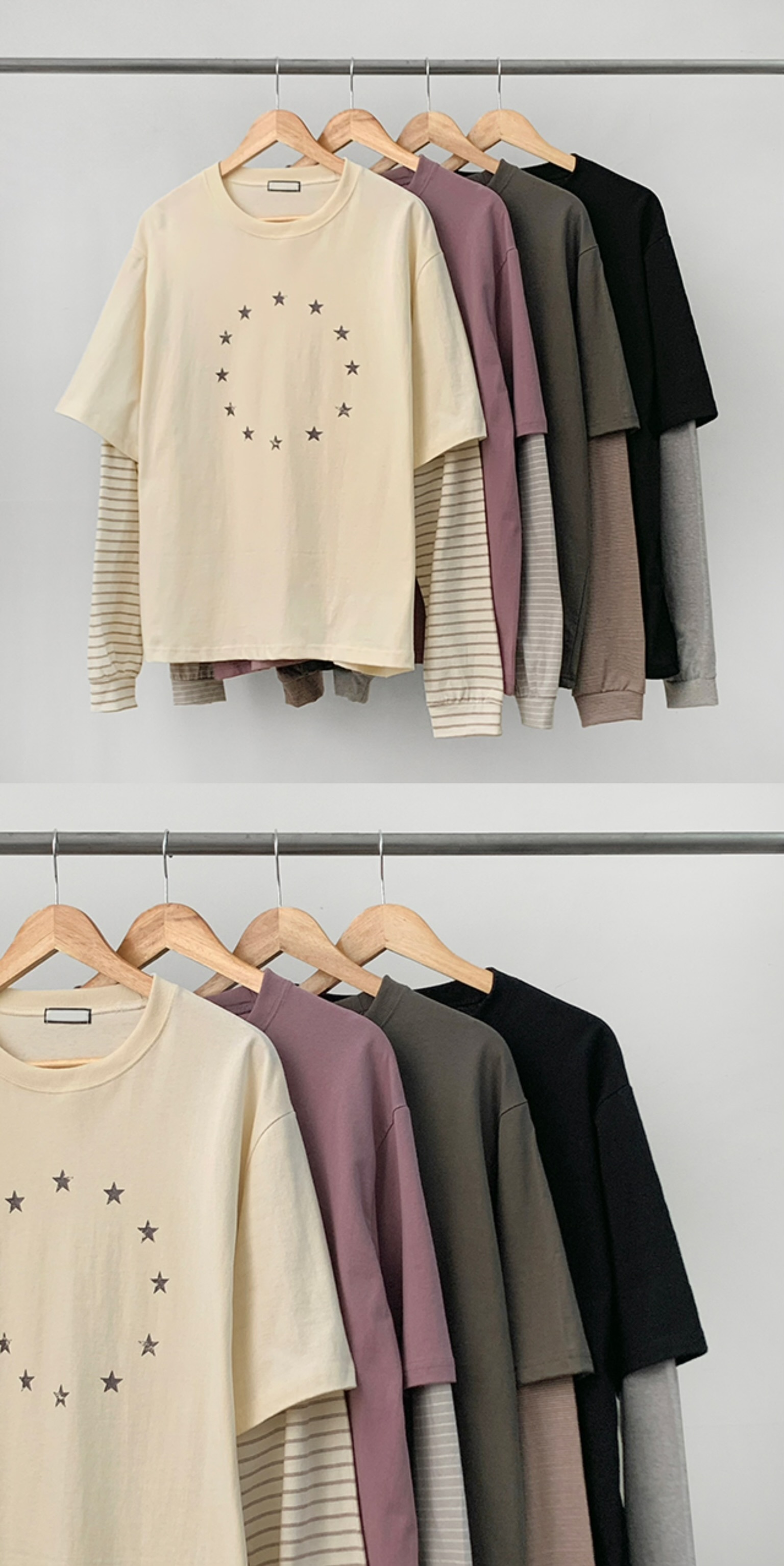 【11/1截單!首批優惠價預訂】韓國星星寬鬆假2件長袖TEE(4色)