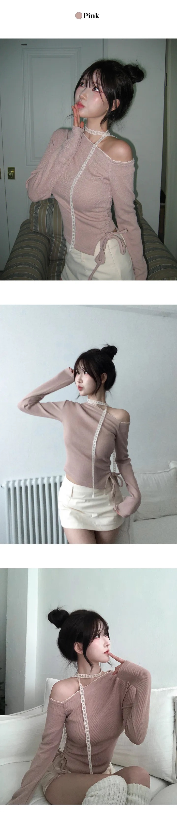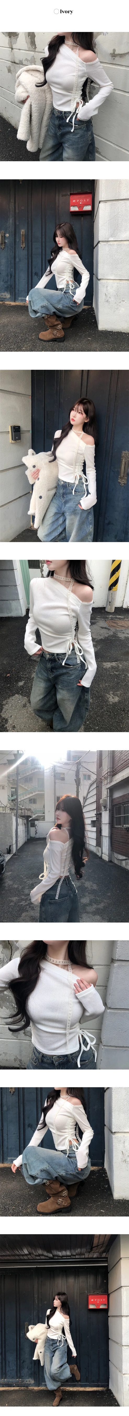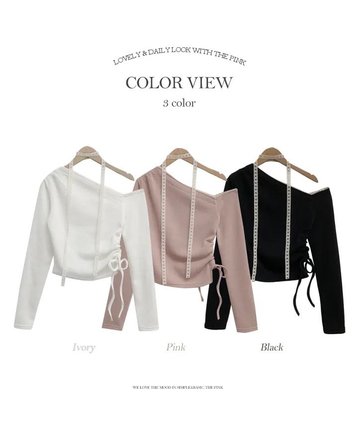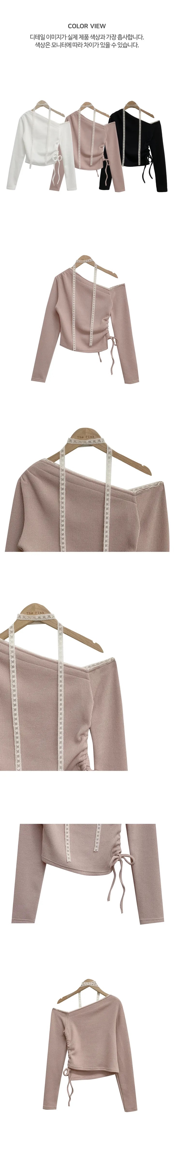 【優惠價預訂】韓國蕾絲領帶露肩抽繩上衣(3色)