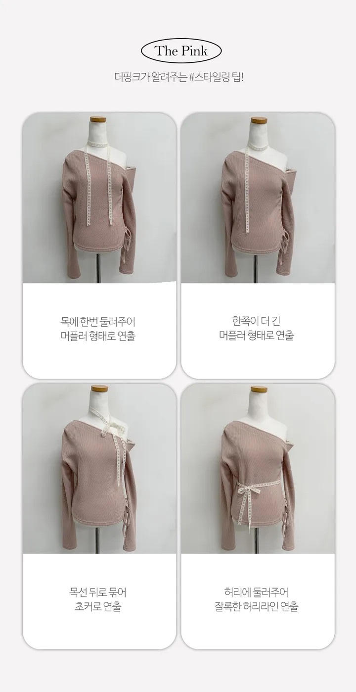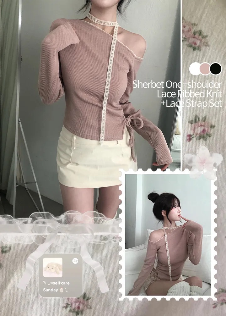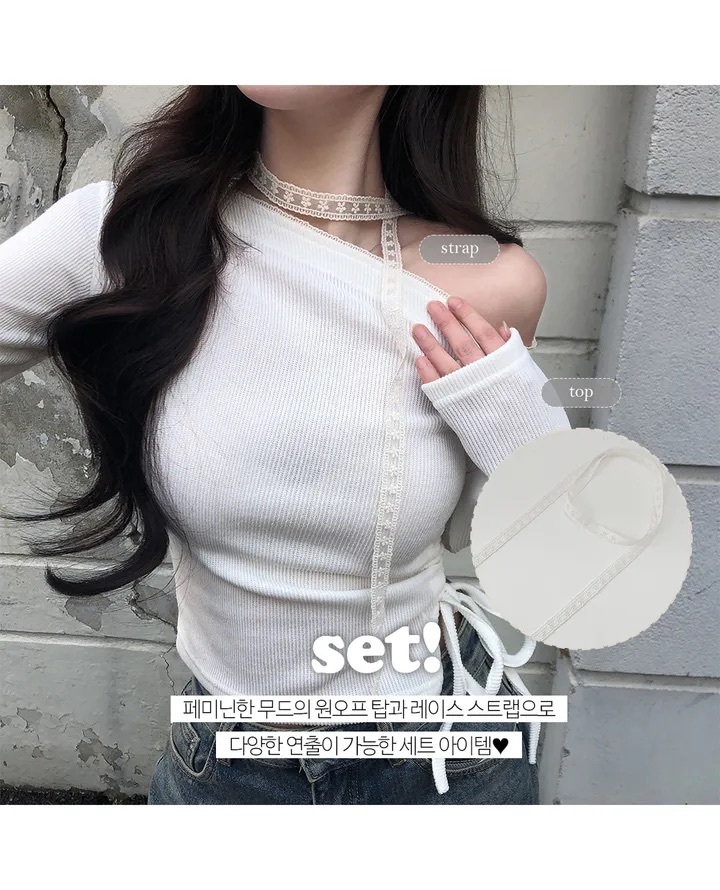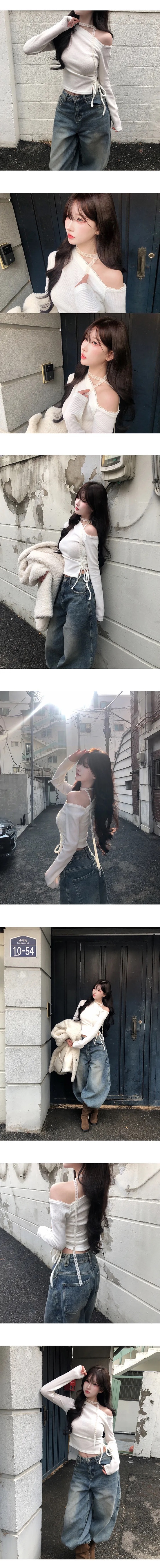 【優惠價預訂】韓國蕾絲領帶露肩抽繩上衣(3色)