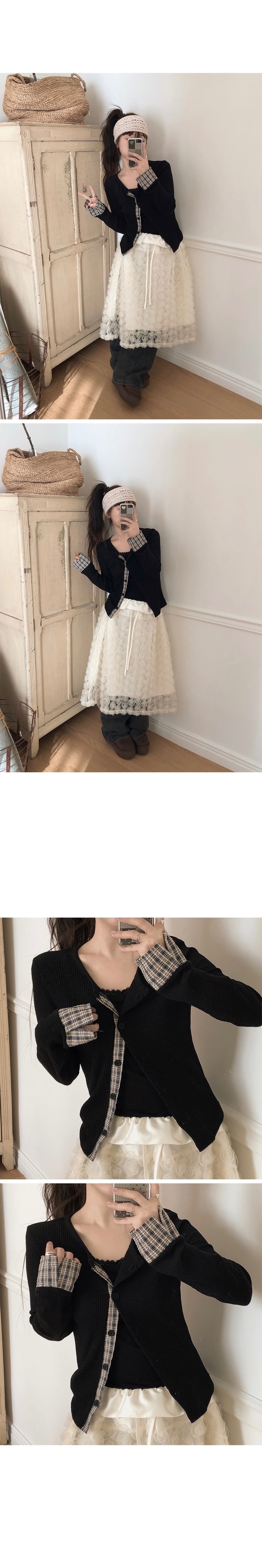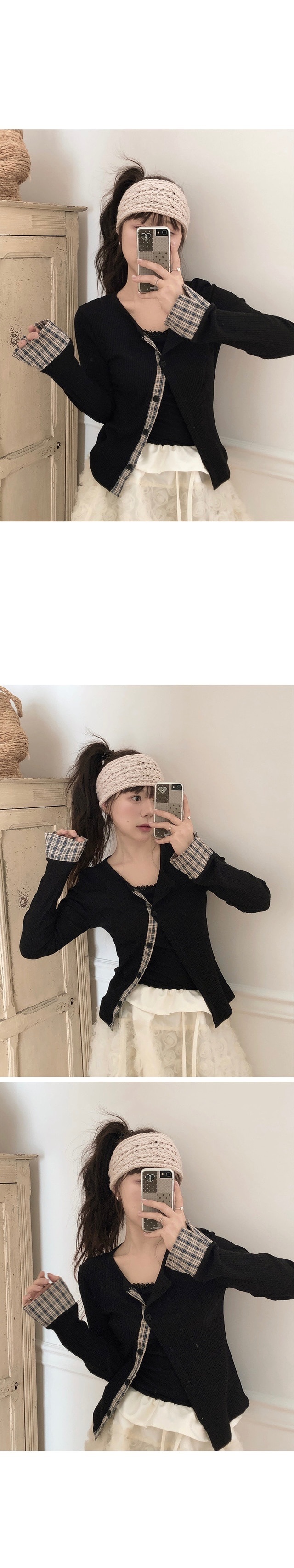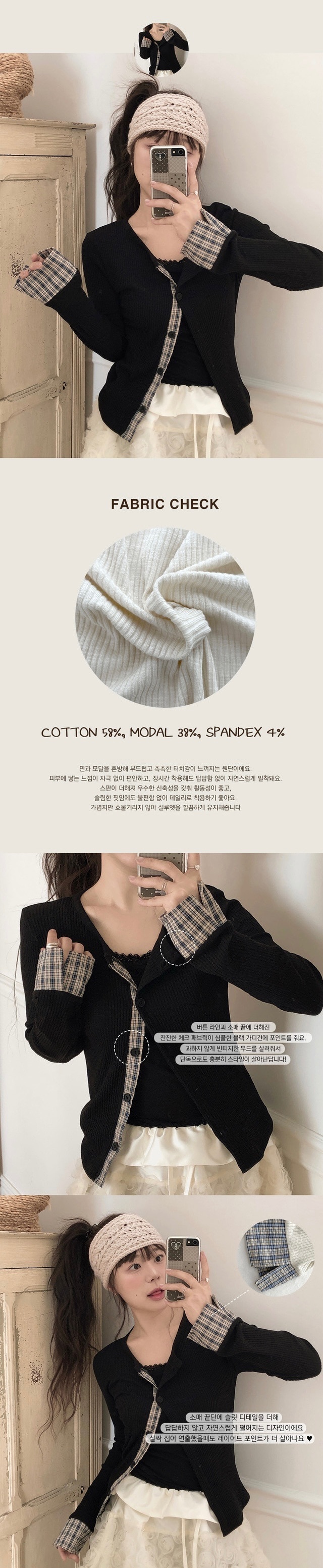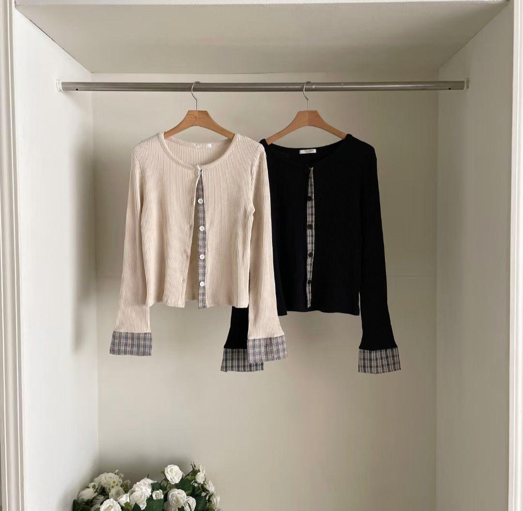 【1/2截單!首批優惠價預訂】韓國格紋袖口針織外套(2色)