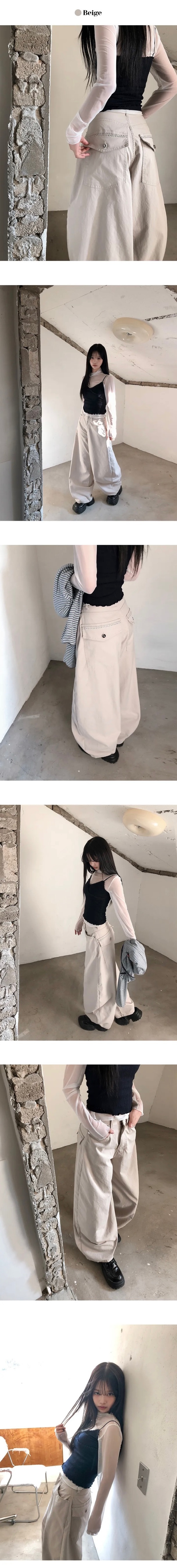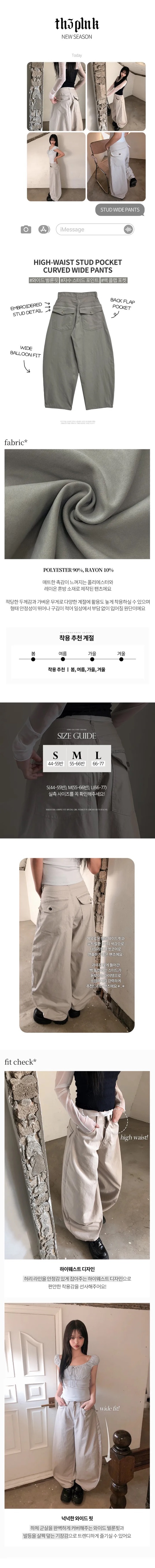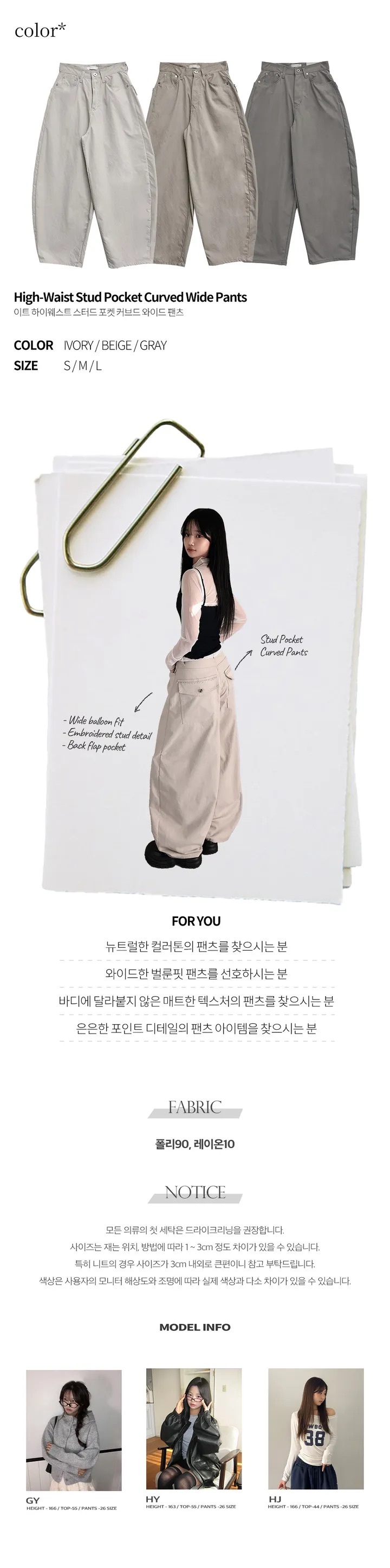 【1/2截單!首批優惠價預訂】人氣彎刀褲!KR HIGHT-WAIST STUD POCKET CURVED WIDE PANTS(3色)