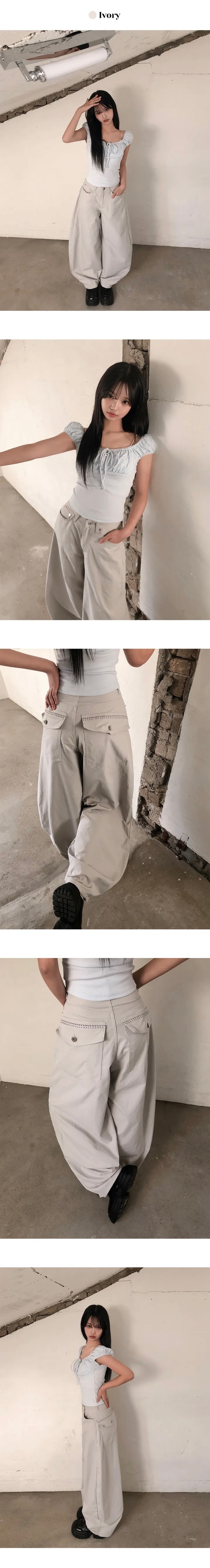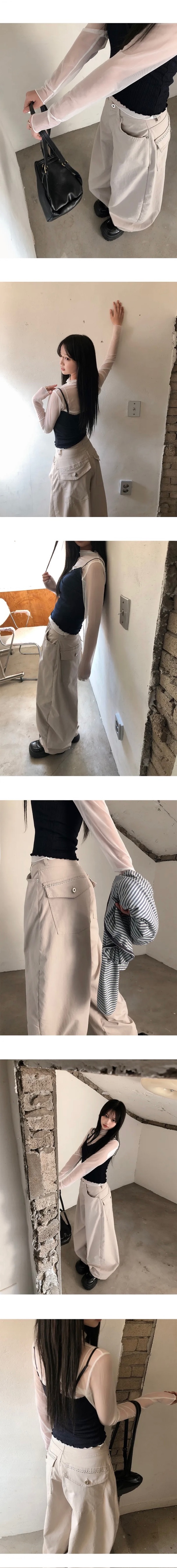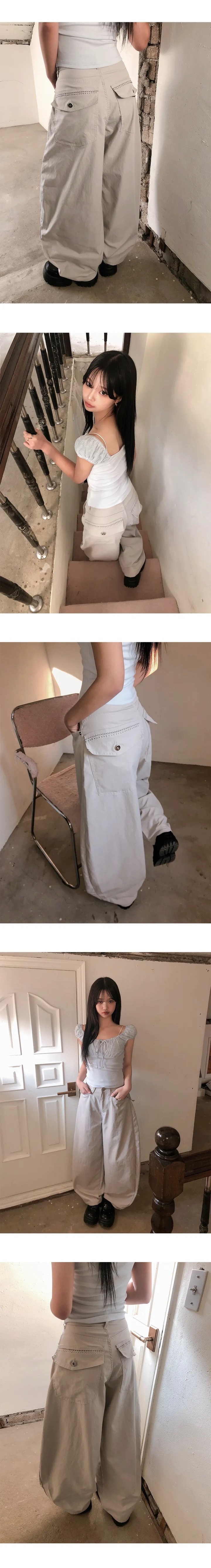 【1/2截單!首批優惠價預訂】人氣彎刀褲!KR HIGHT-WAIST STUD POCKET CURVED WIDE PANTS(3色)