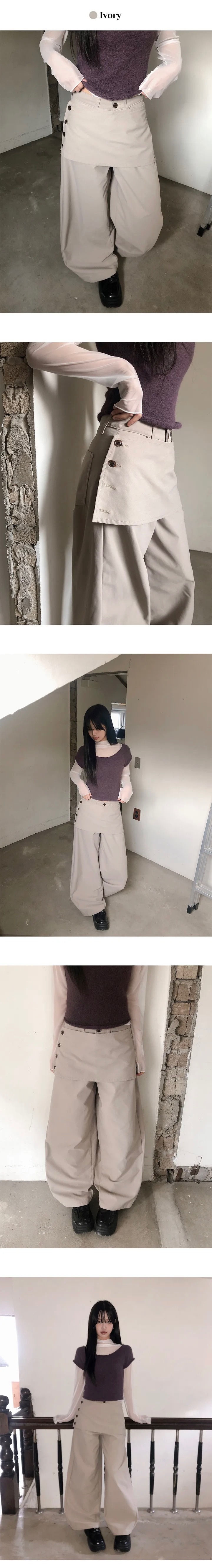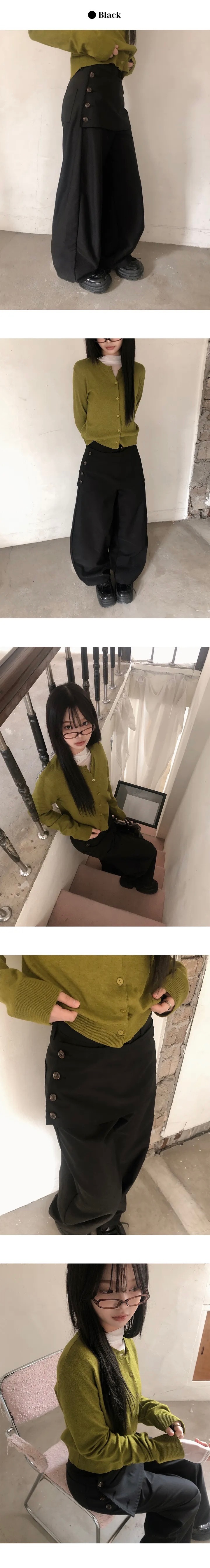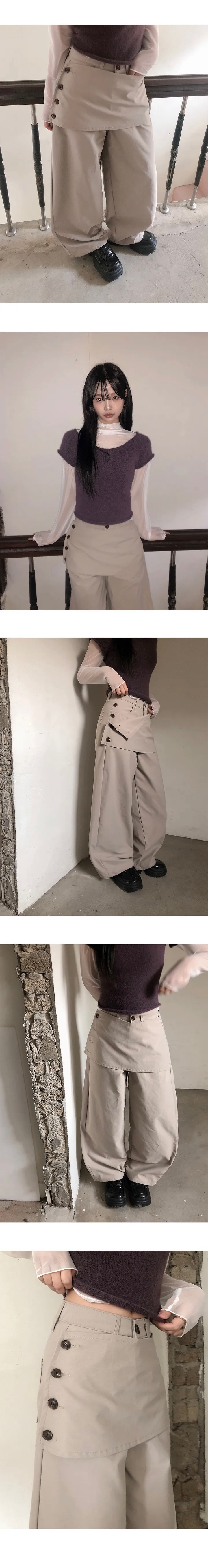 【1/2截單!首批優惠價預訂】人氣彎刀褲!KR LAYERED BUTTON WRAP WIDE SLACKS PANTS(4色)