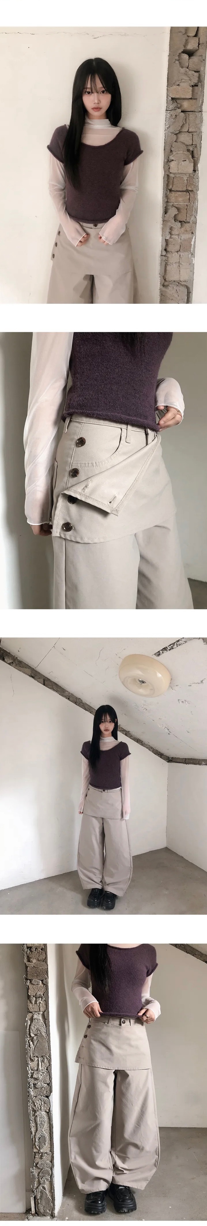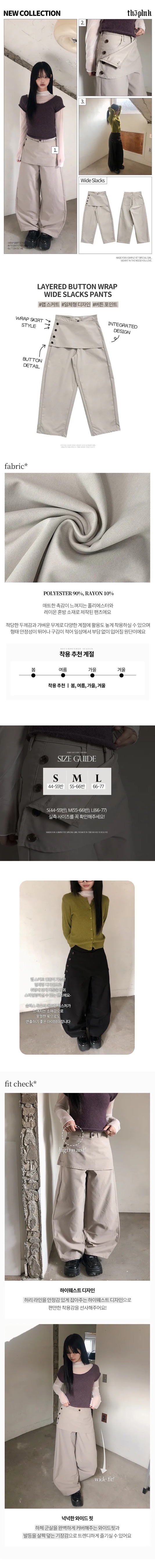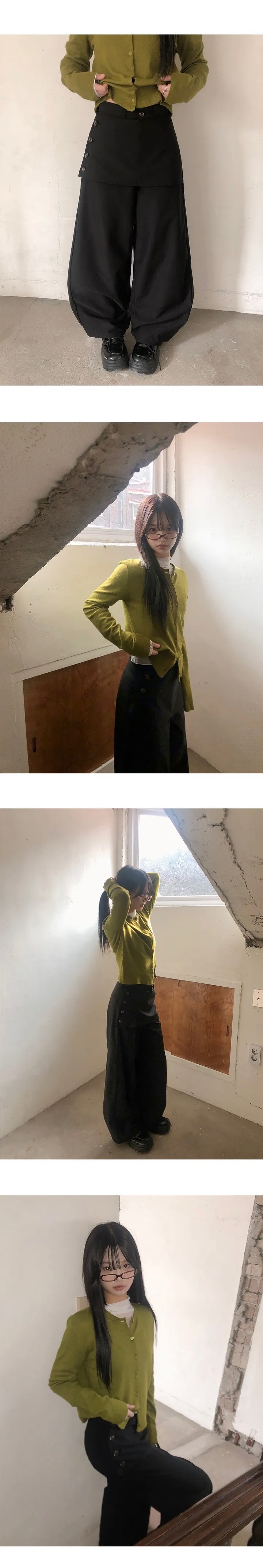 【1/2截單!首批優惠價預訂】人氣彎刀褲!KR LAYERED BUTTON WRAP WIDE SLACKS PANTS(4色)