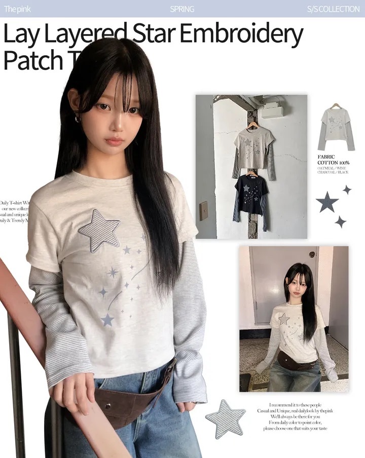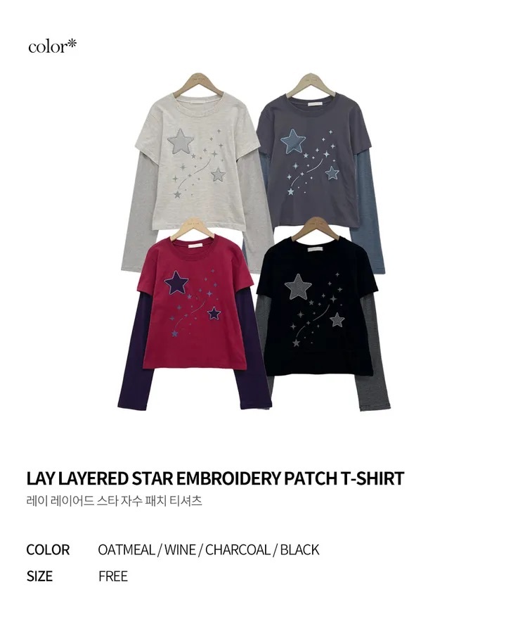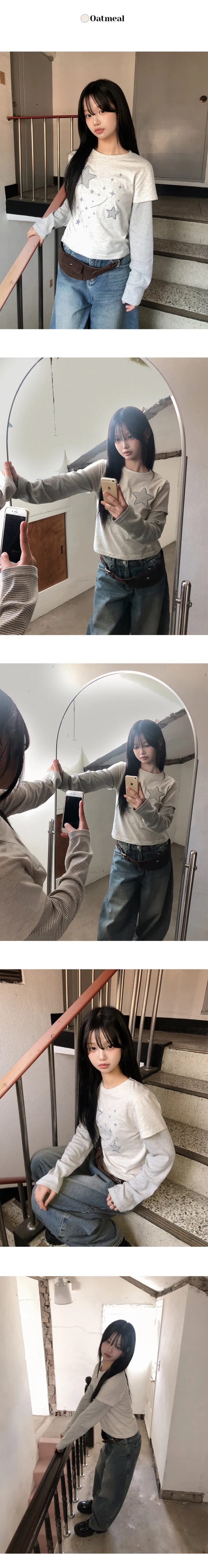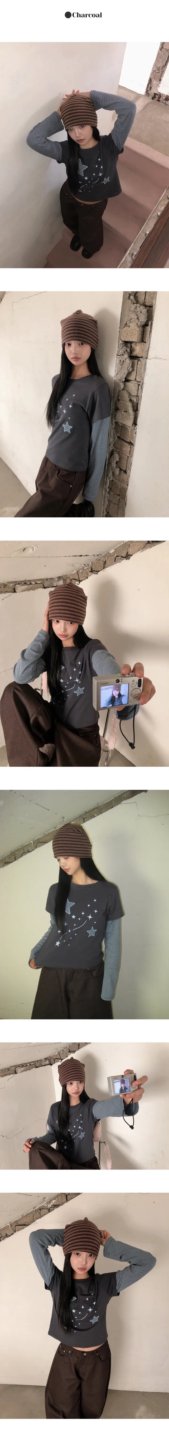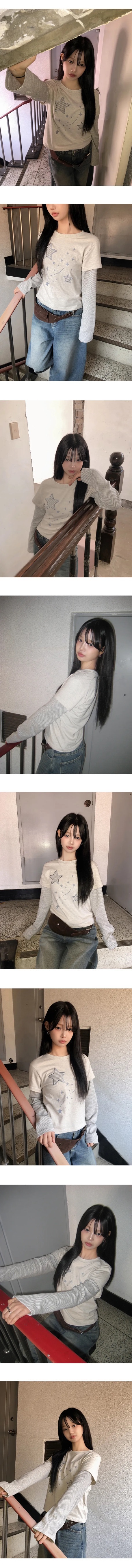 【1/2截單!首批優惠價預訂】韓國星星層疊長袖上衣(4色)
