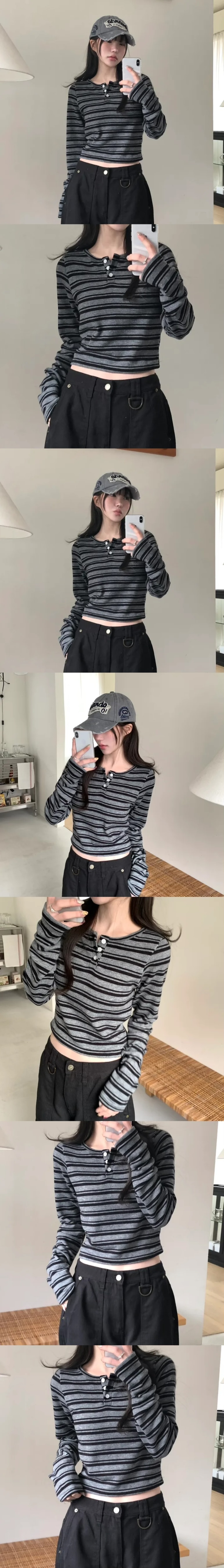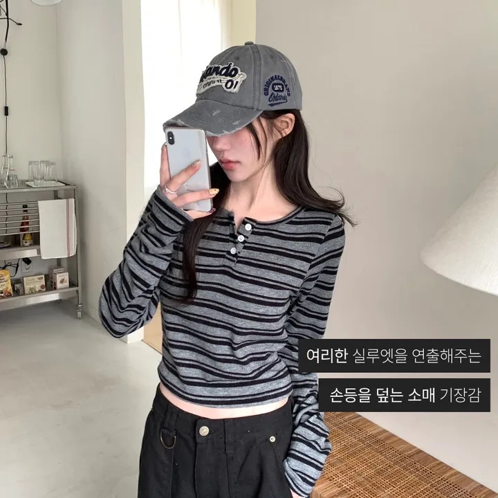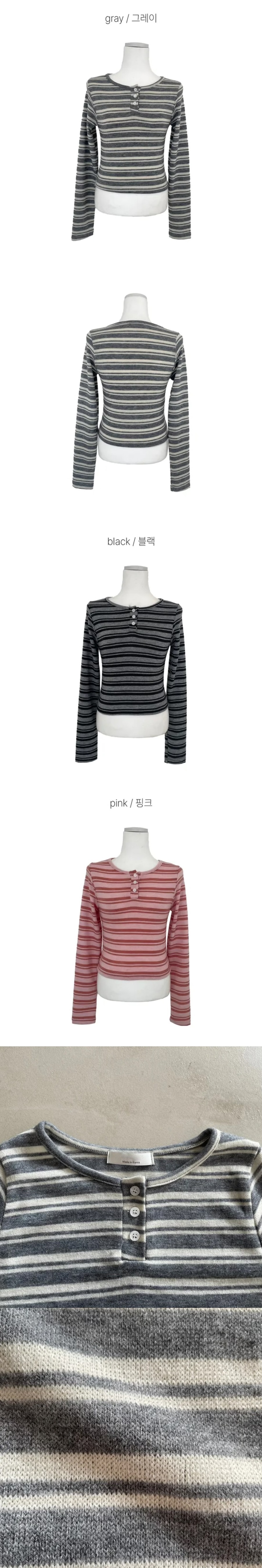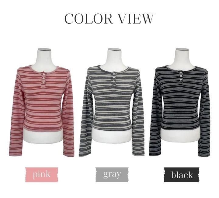 【6/2完額外95折優惠!首批優惠價預訂】韓國春季間條鈕扣長袖上衣(3色)