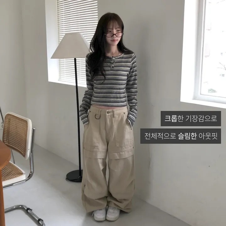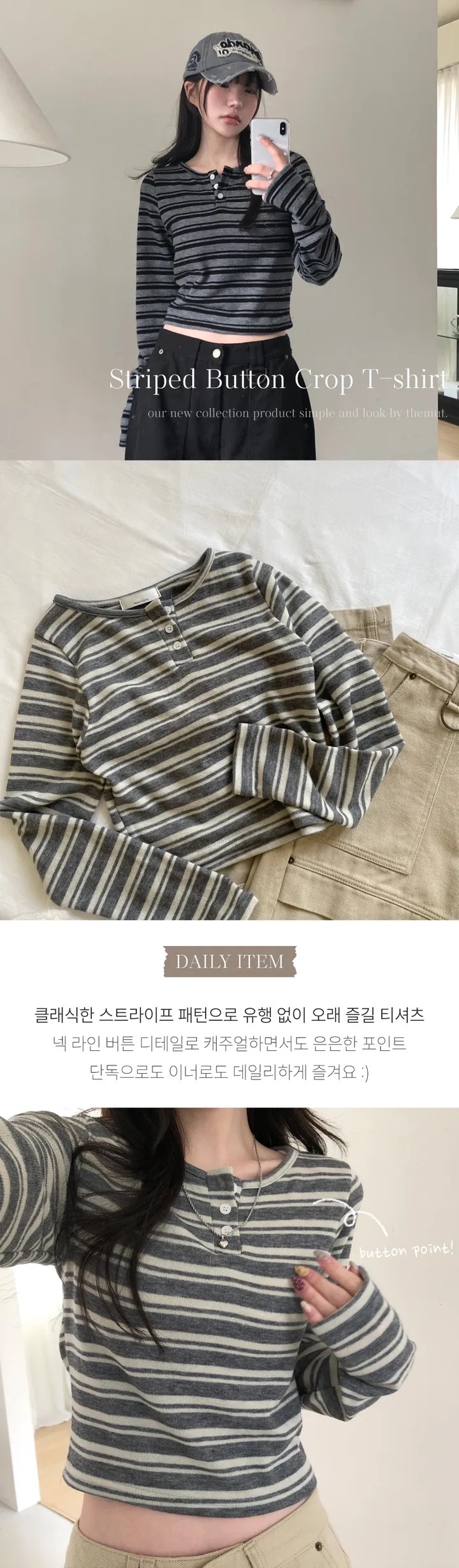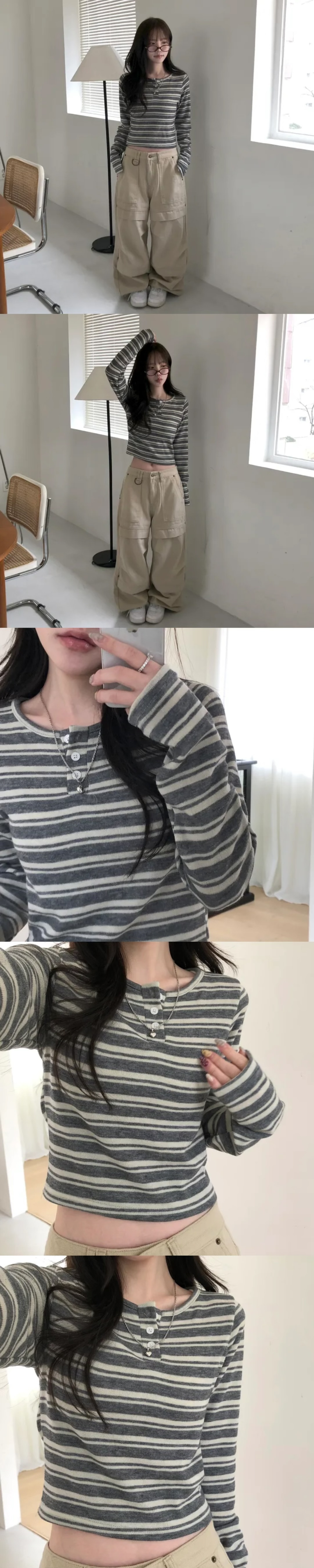 【6/2完額外95折優惠!首批優惠價預訂】韓國春季間條鈕扣長袖上衣(3色)