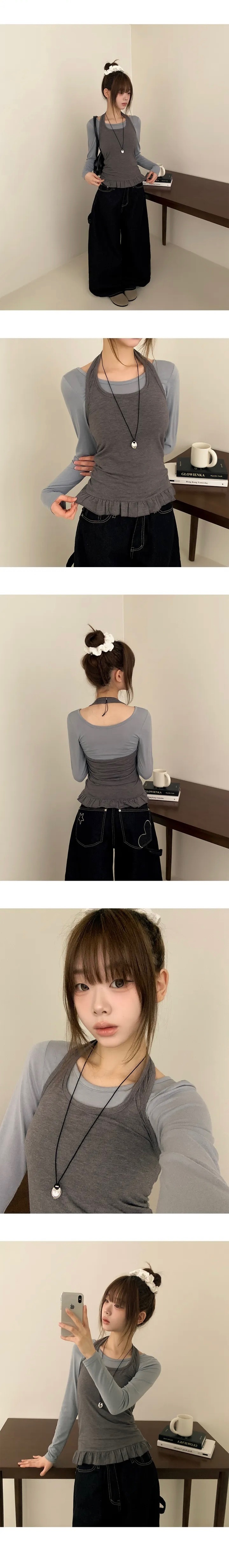 【11/2完額外95折優惠!首批優惠價預訂】韓國掛頸荷葉邊套裝(3色)