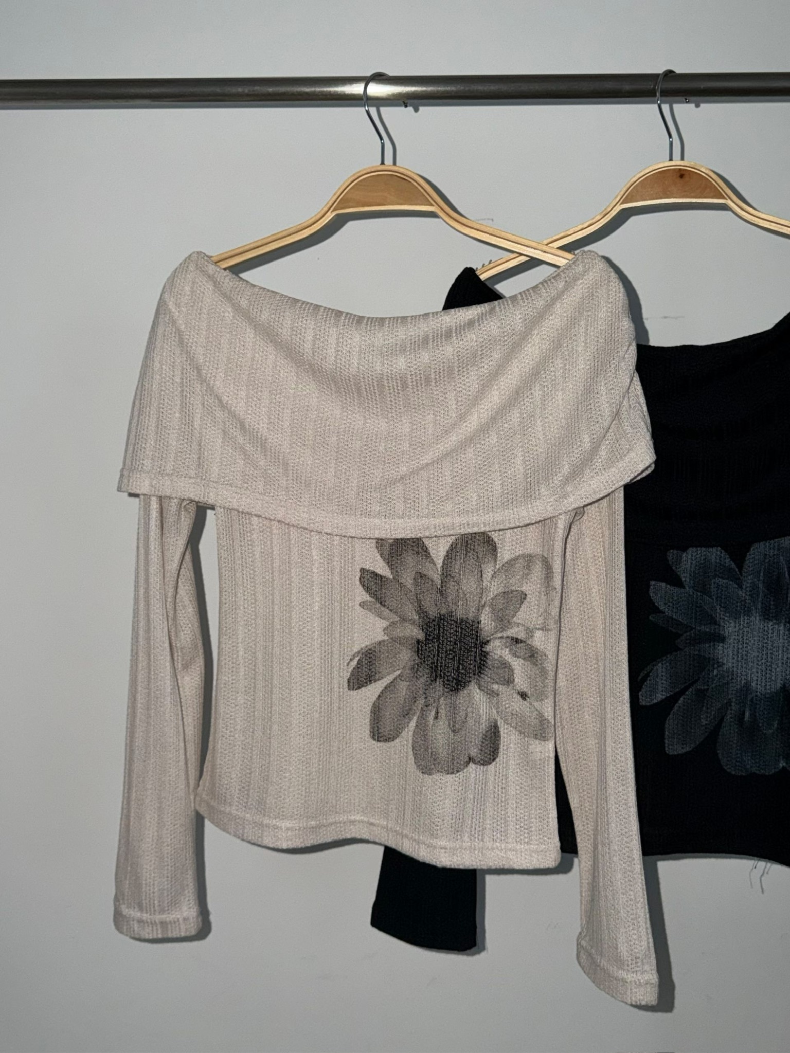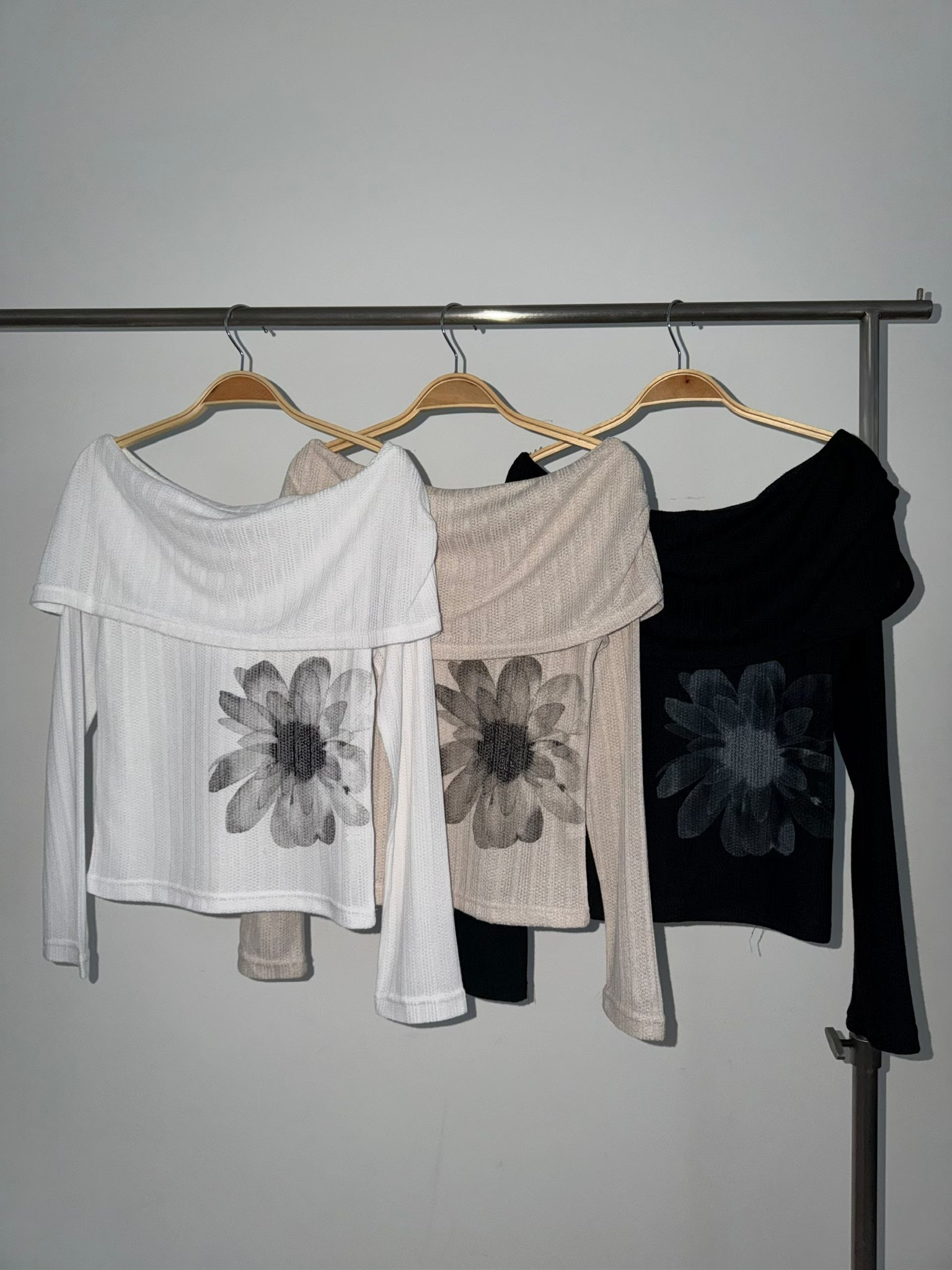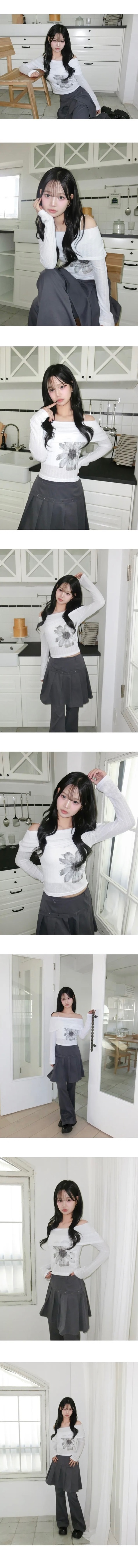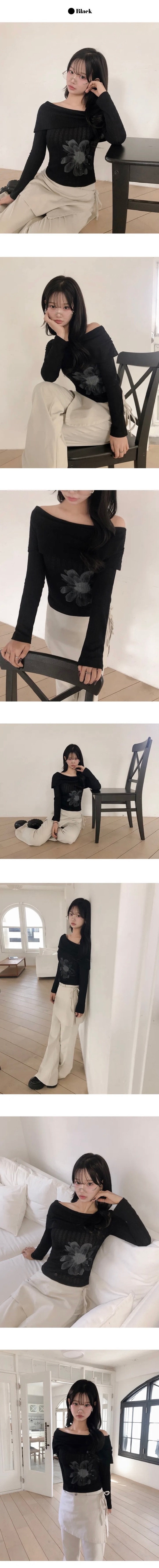 【18/2完額外95折優惠!首批優惠價預訂】韓國微透花朵露肩針織衫(3色)