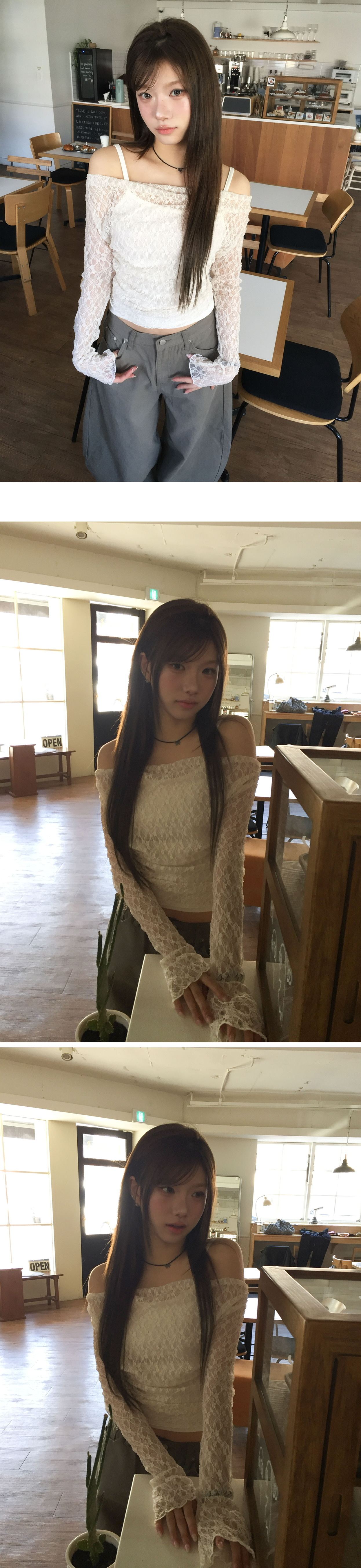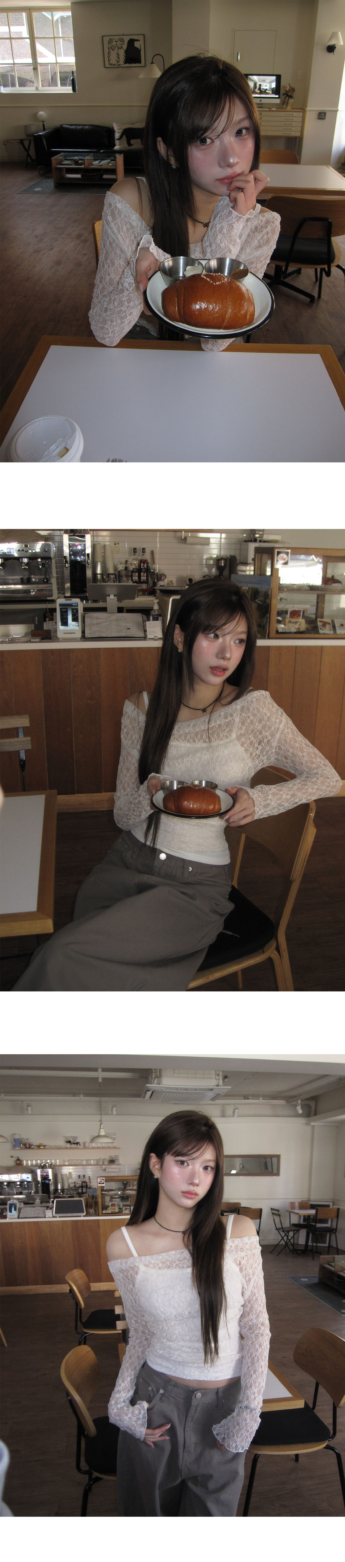 【26/2完8折優惠!優惠預訂】韓國蕾絲一字肩套裝(3色)