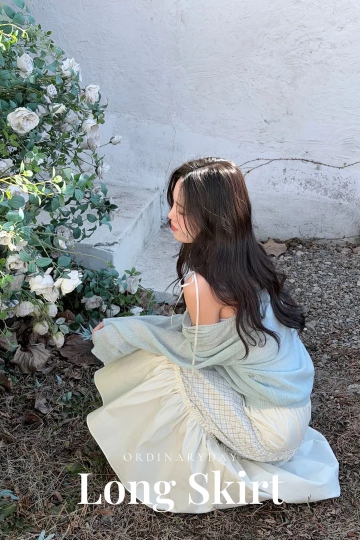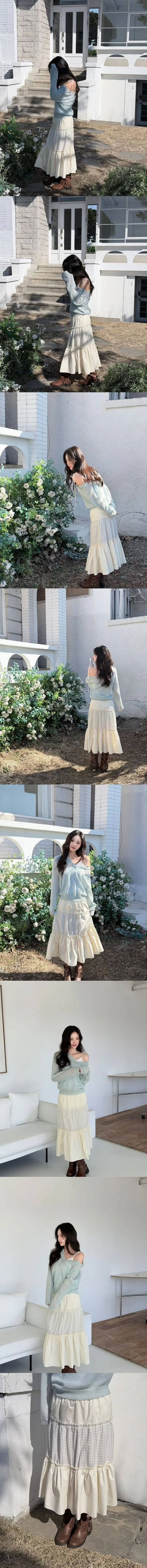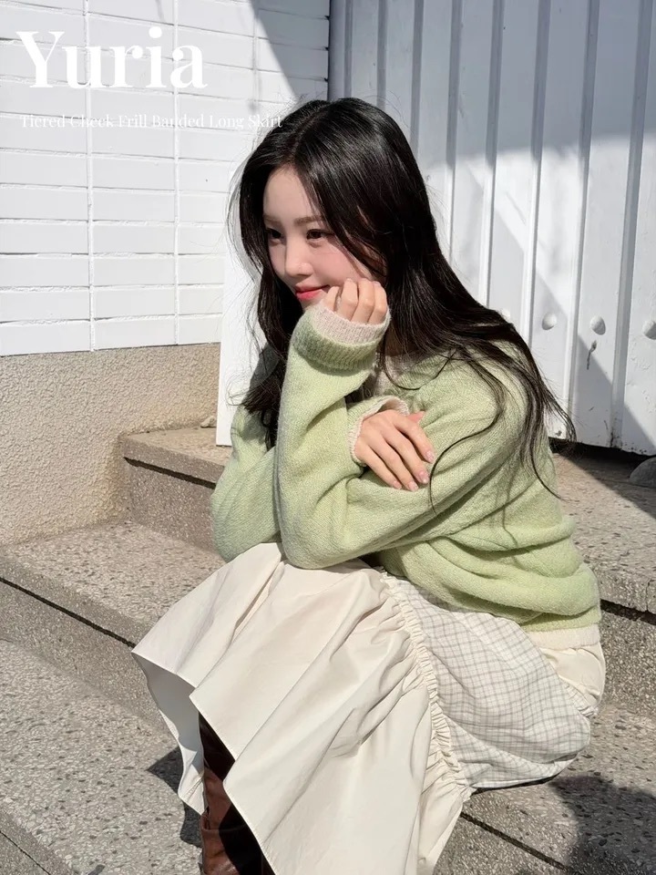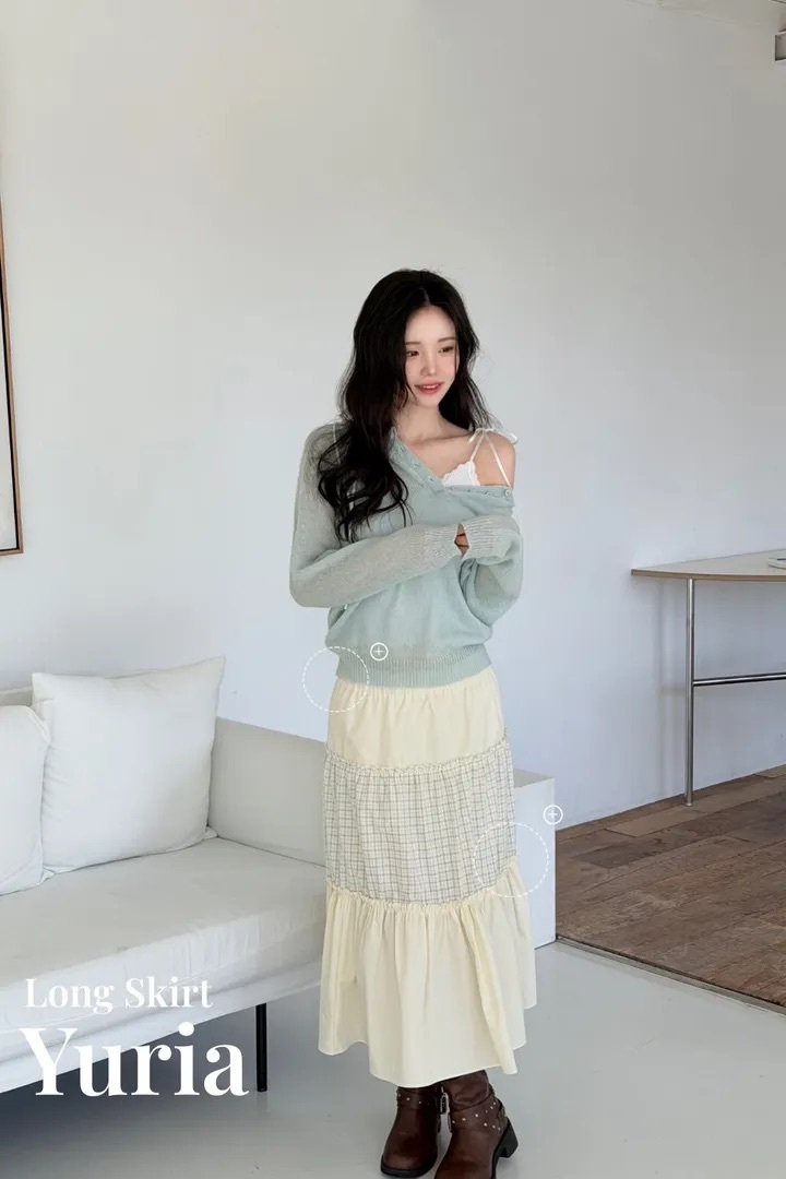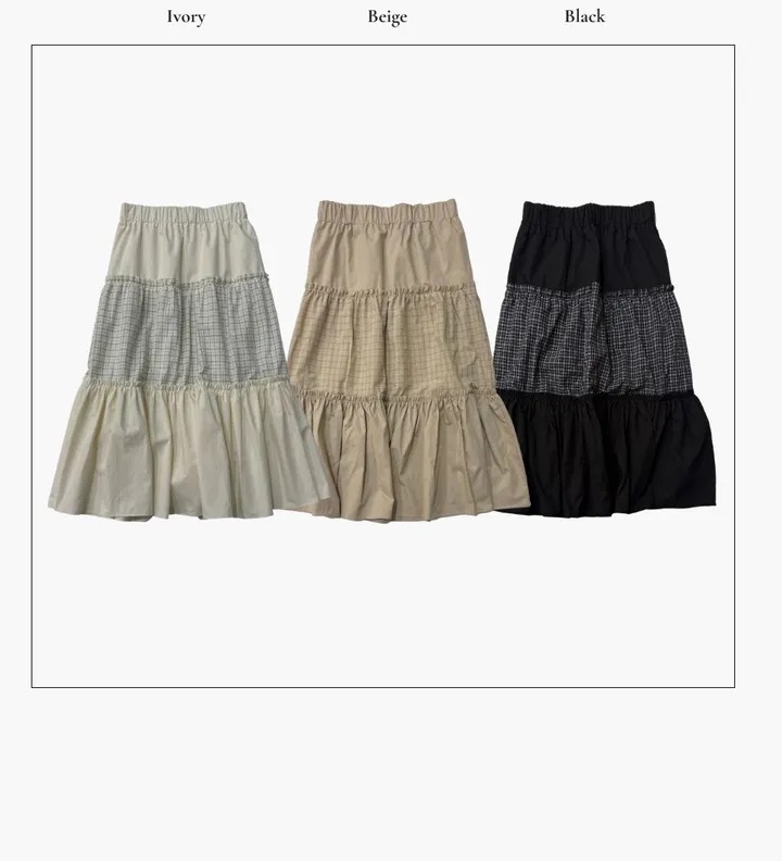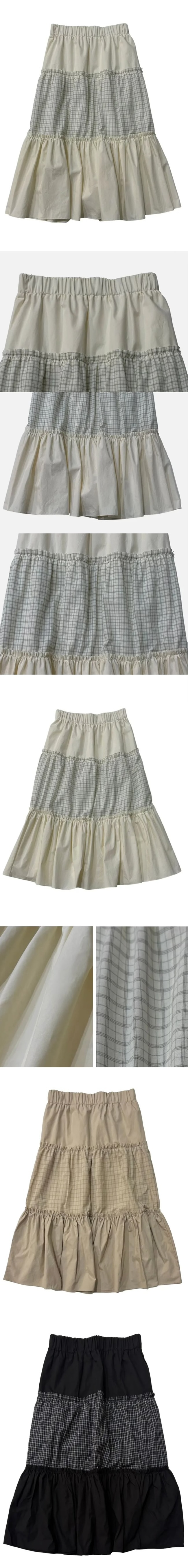 【4/3完首批8折優惠預訂】韓國拼色格紋荷葉邊長裙(3色)