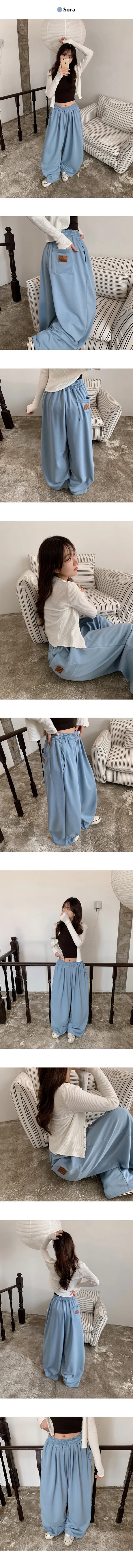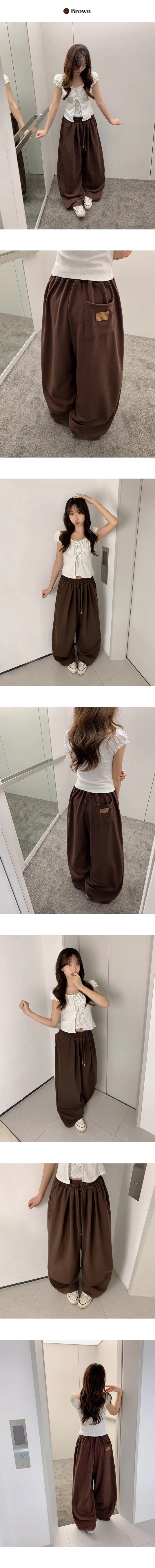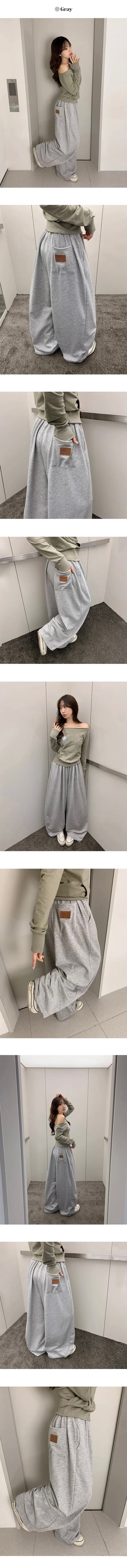 【15/3完8折優惠預訂】韓國皮革旗幟闊腳運動褲(6色)