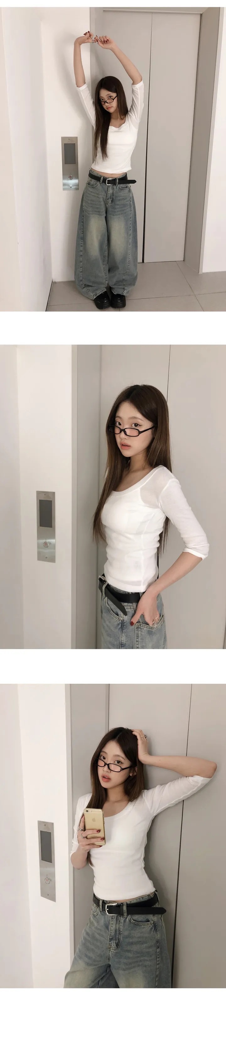 【15/3完8折優惠預訂】韓國圓領7分袖純色上衣(7色)