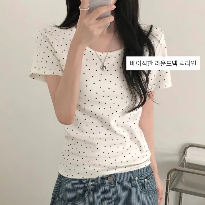 【25.3 完額外95折優惠預訂】韓國點點星星修身短袖TEE(3色)