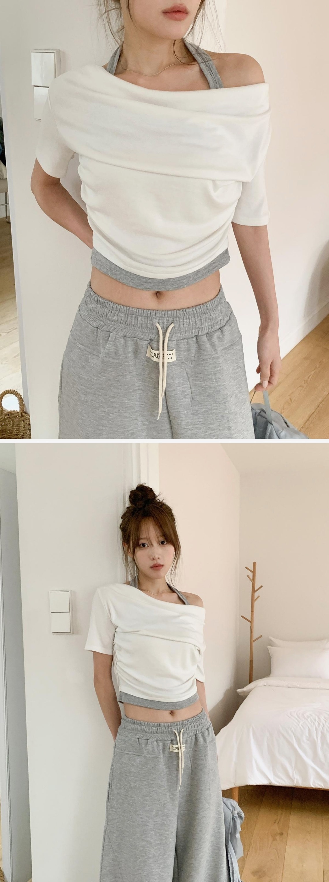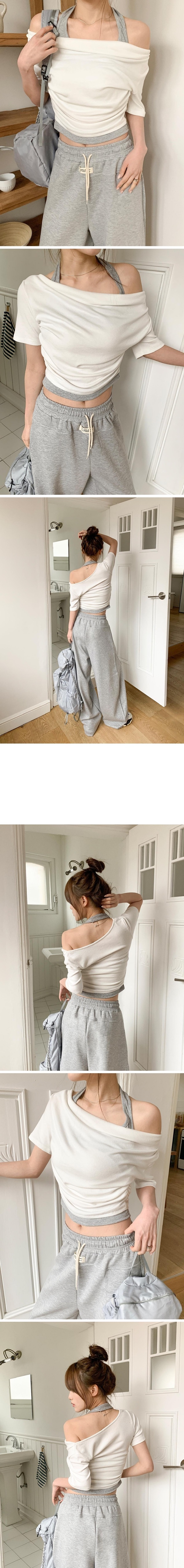 【1.4 完額外95折優惠預訂】韓國掛頸拼色短袖上衣(4色)
