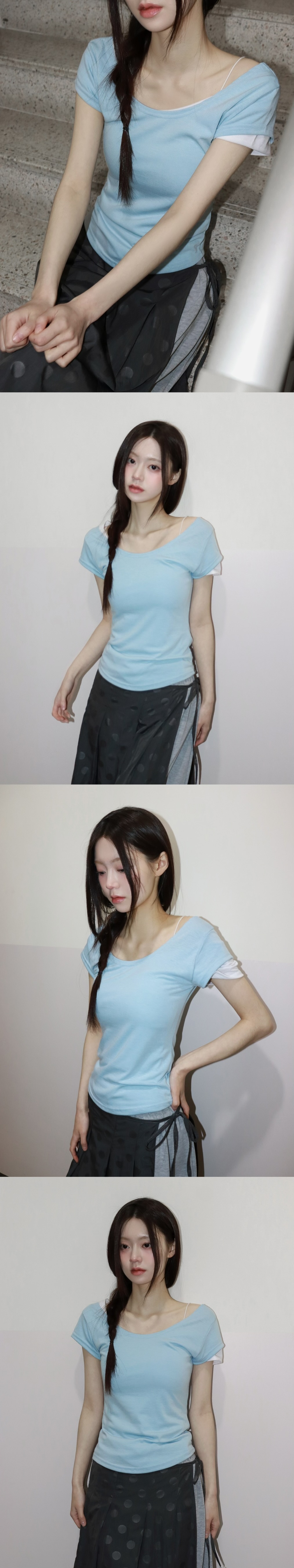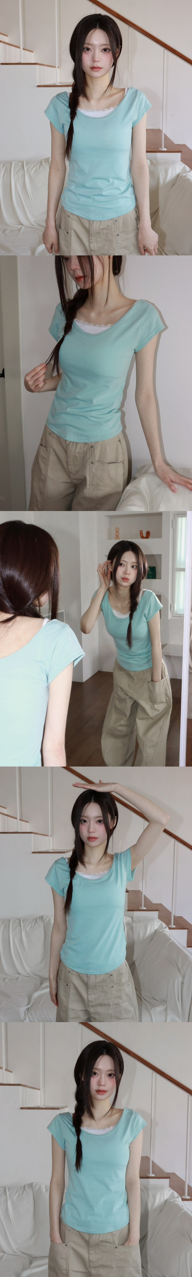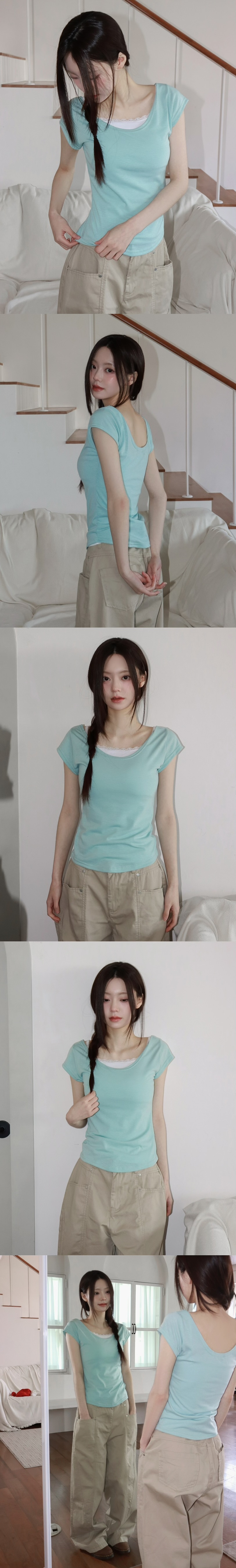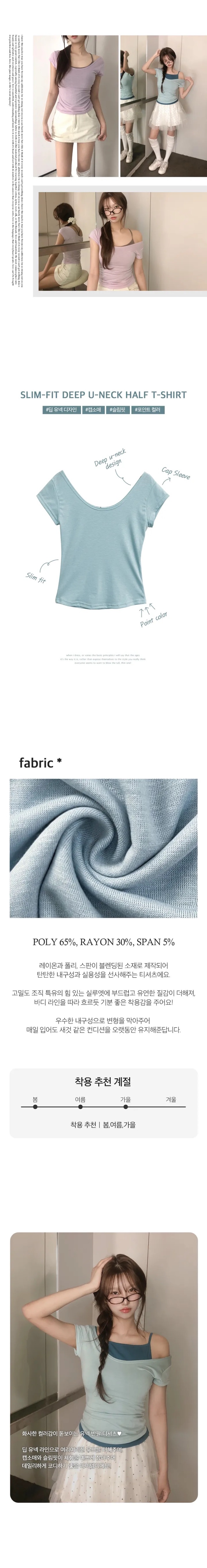 【1.4 完額外95折優惠預訂】馬卡龍色系!韓國大U領修身短袖TEE(6色)