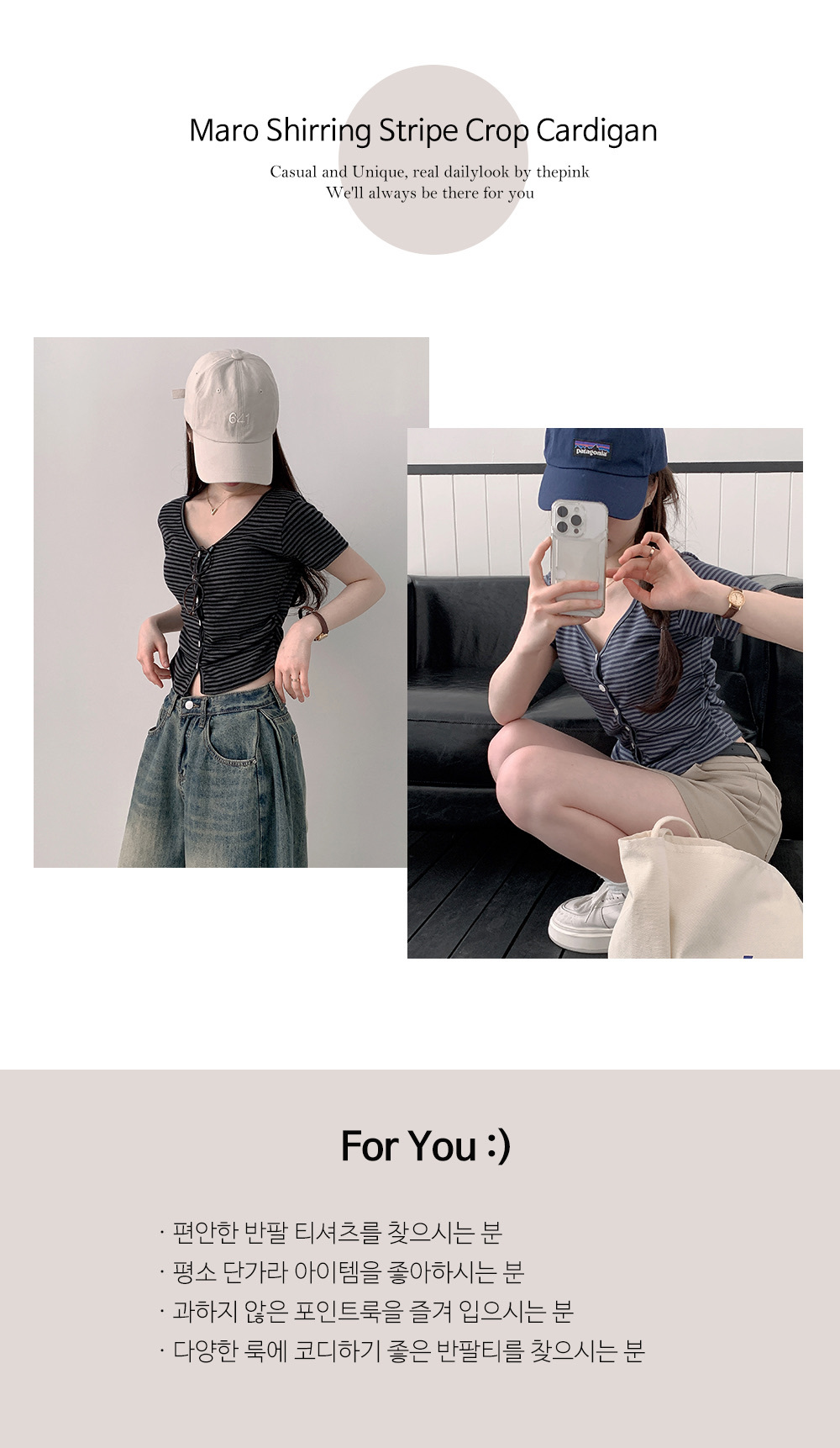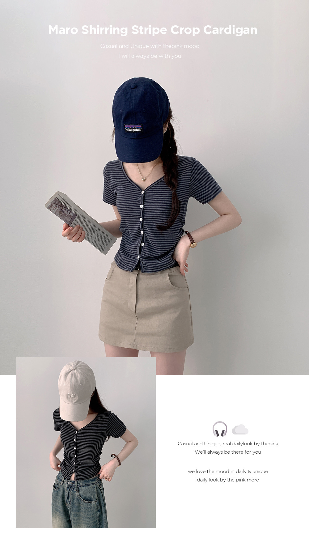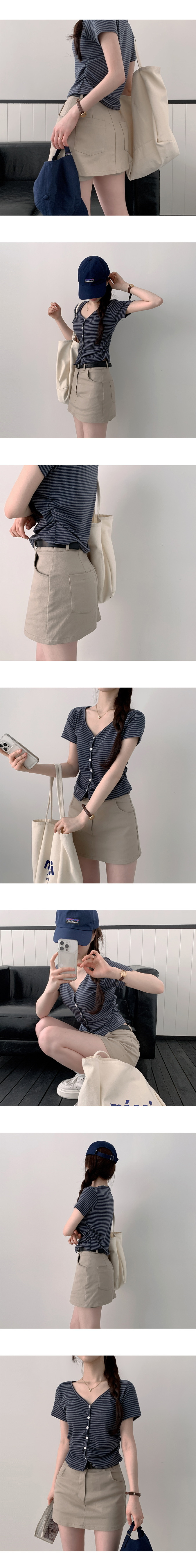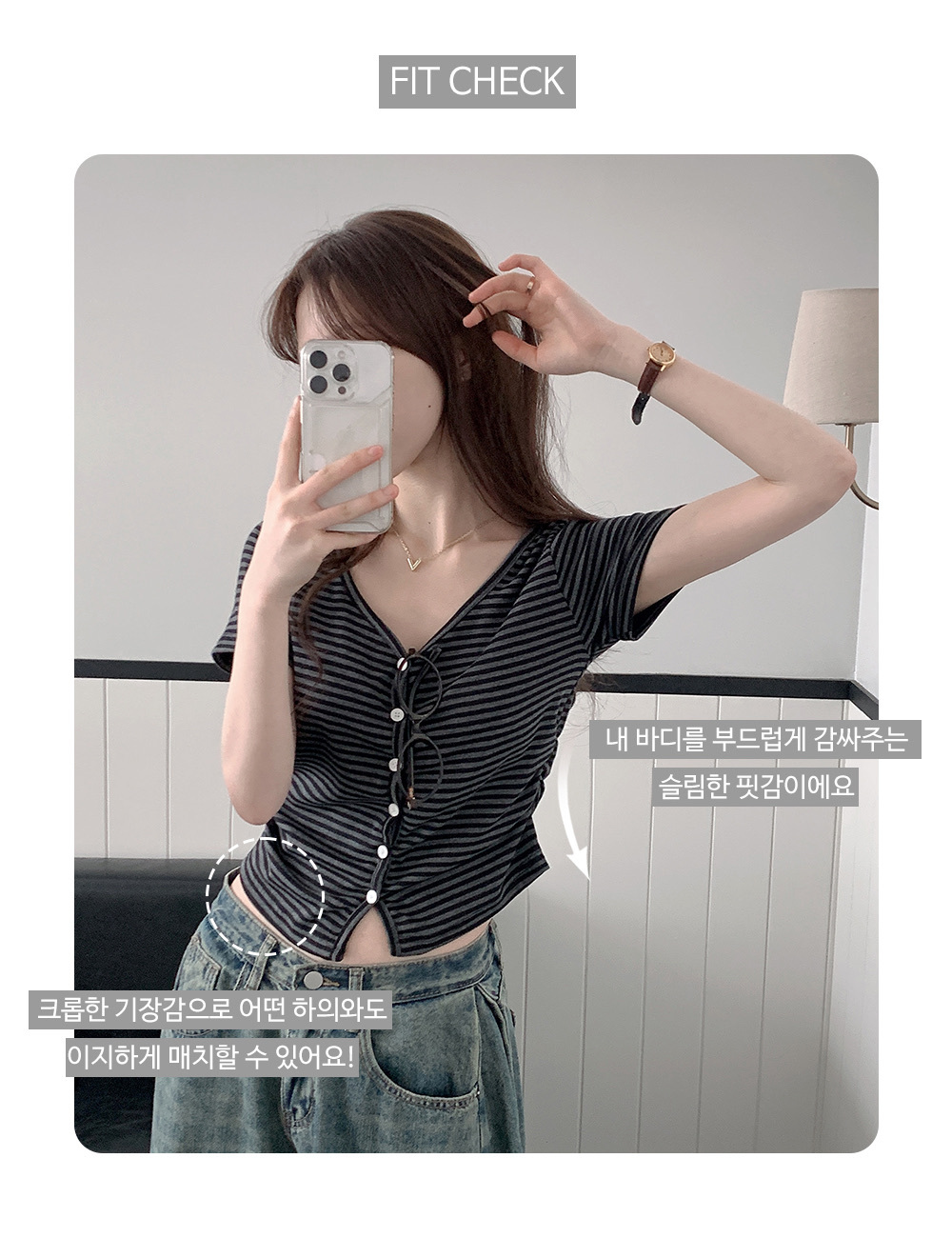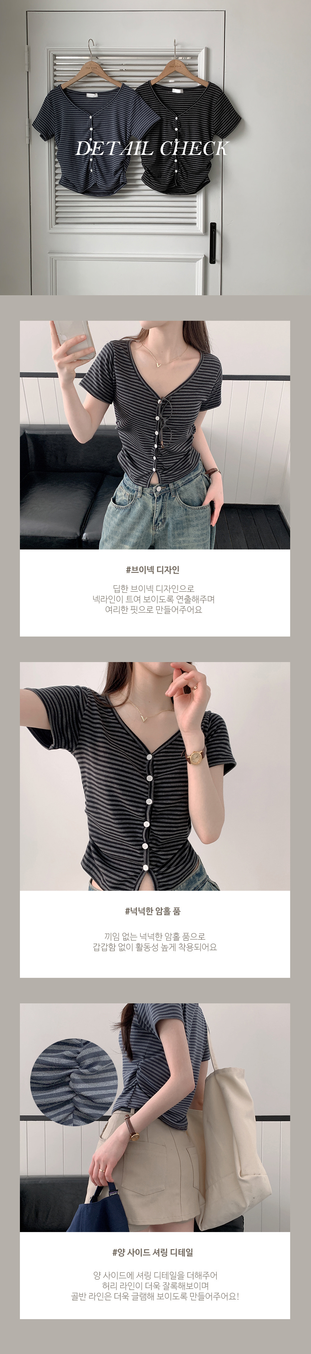 【優惠價預訂】韓國橫間V領鈕扣短袖TOP(2色)