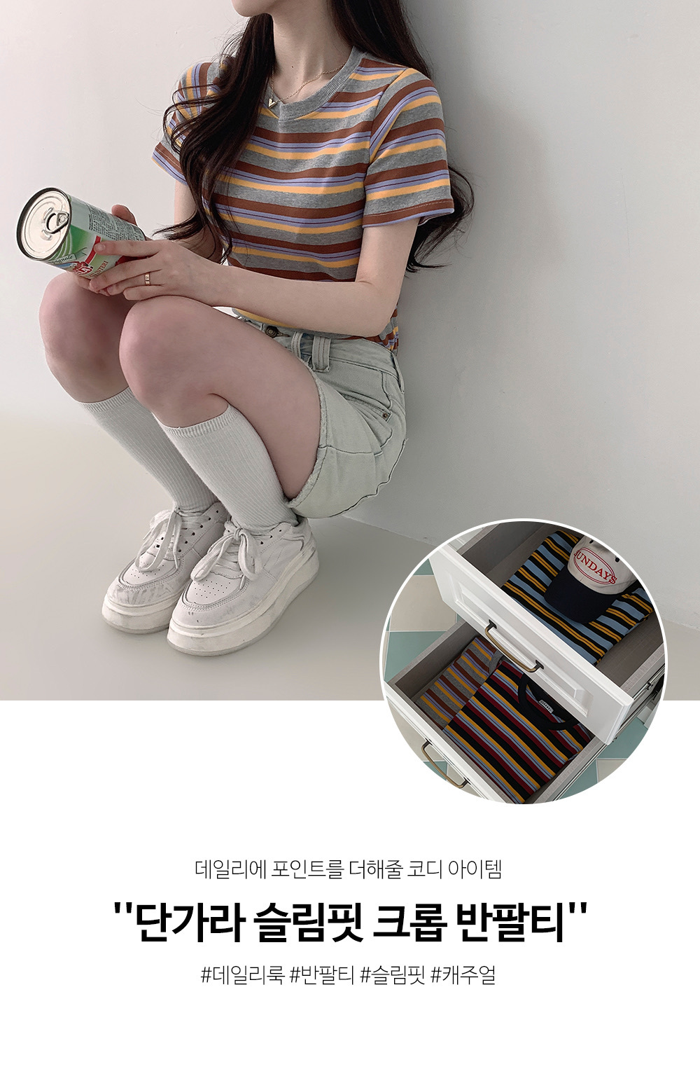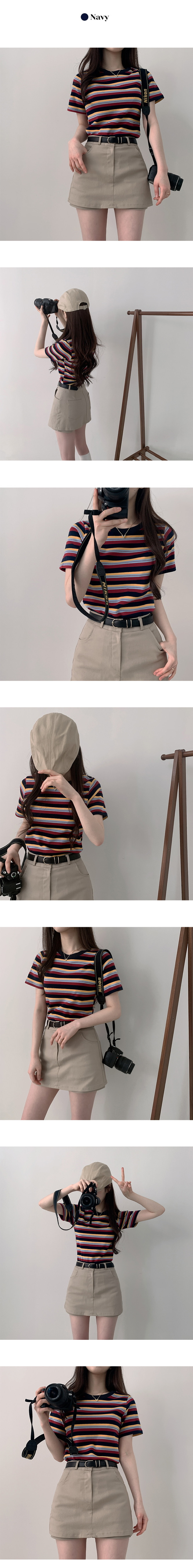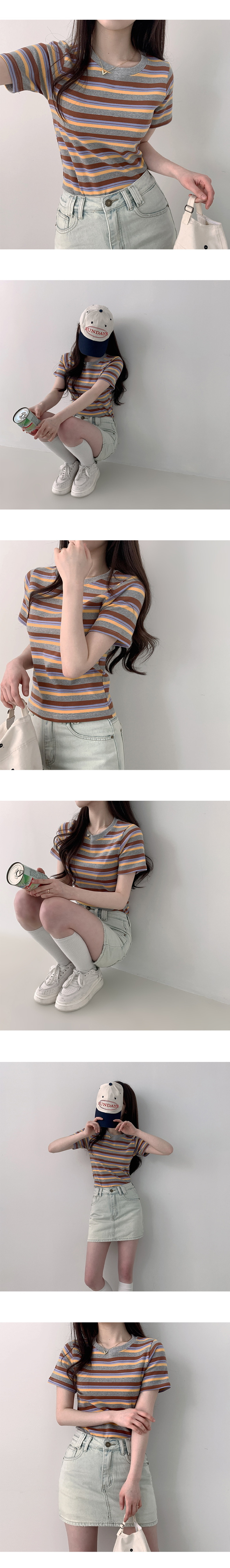 【優惠價現貨】韓國厚身多色橫間CROP TEE(3色)