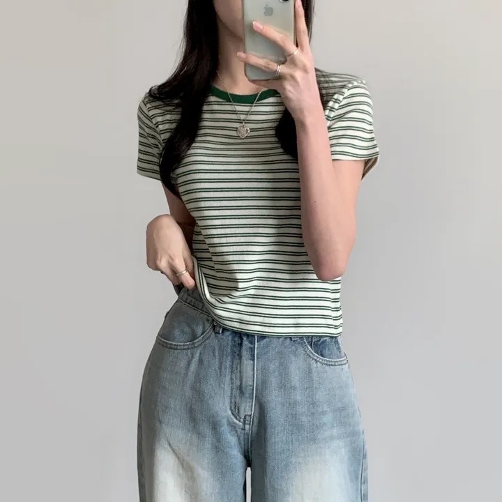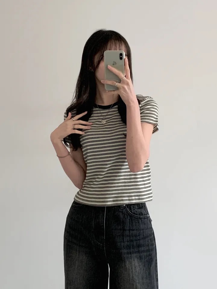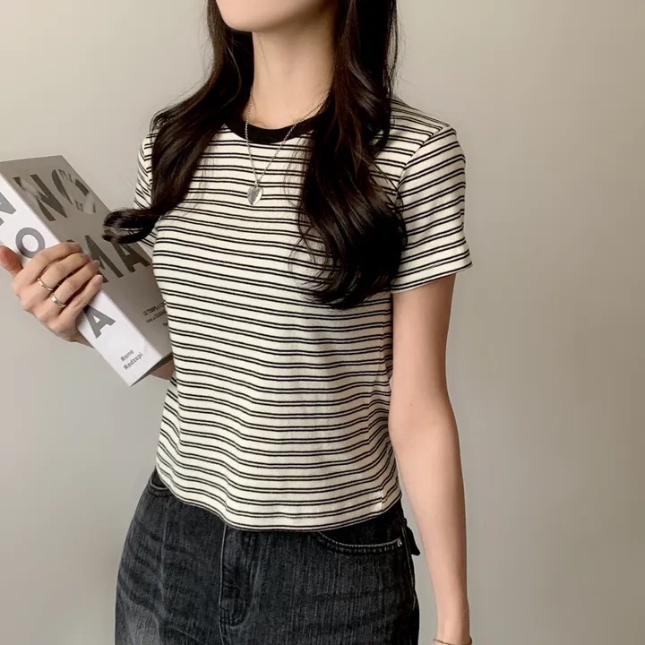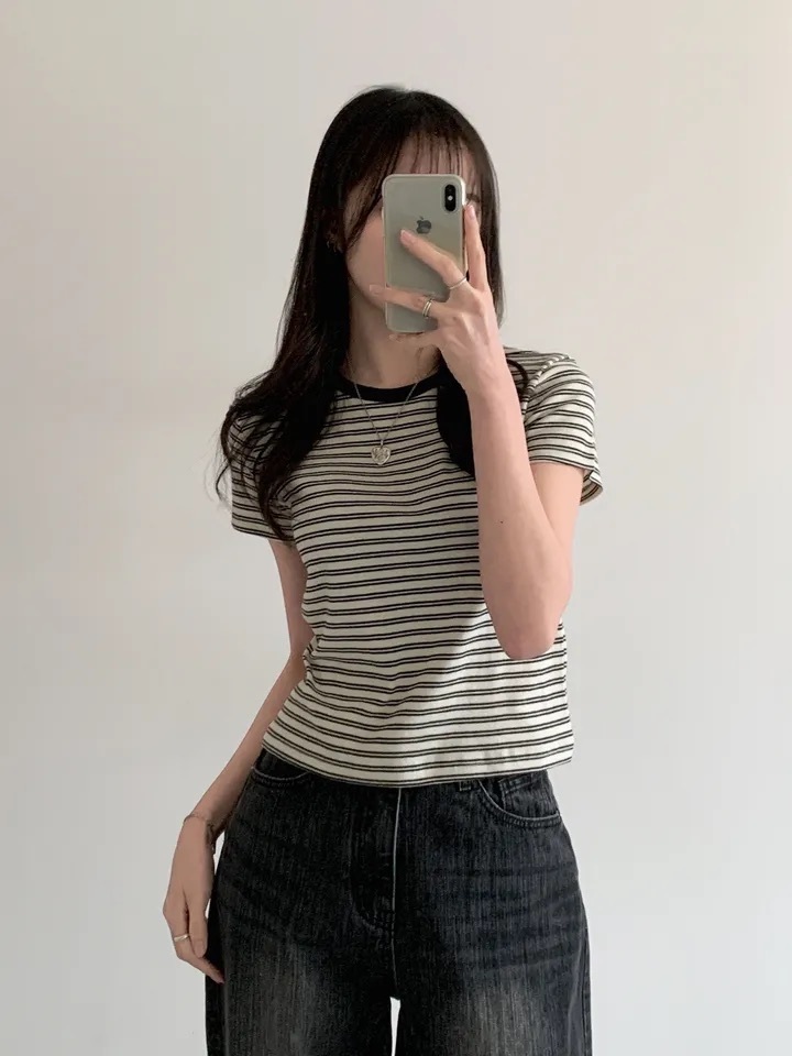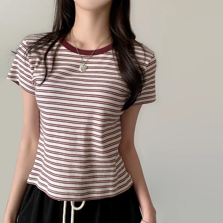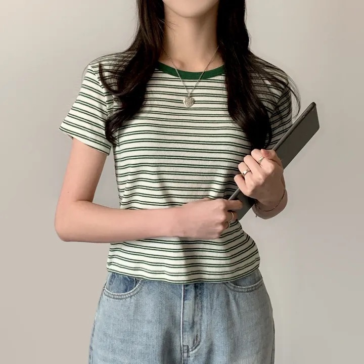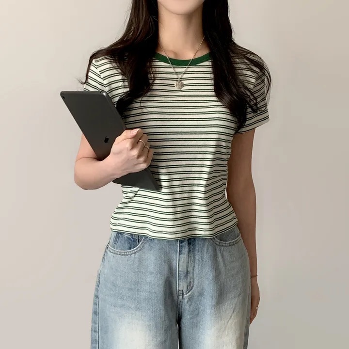 【優惠價預訂】韓國棉質配色間條TEE(4色)