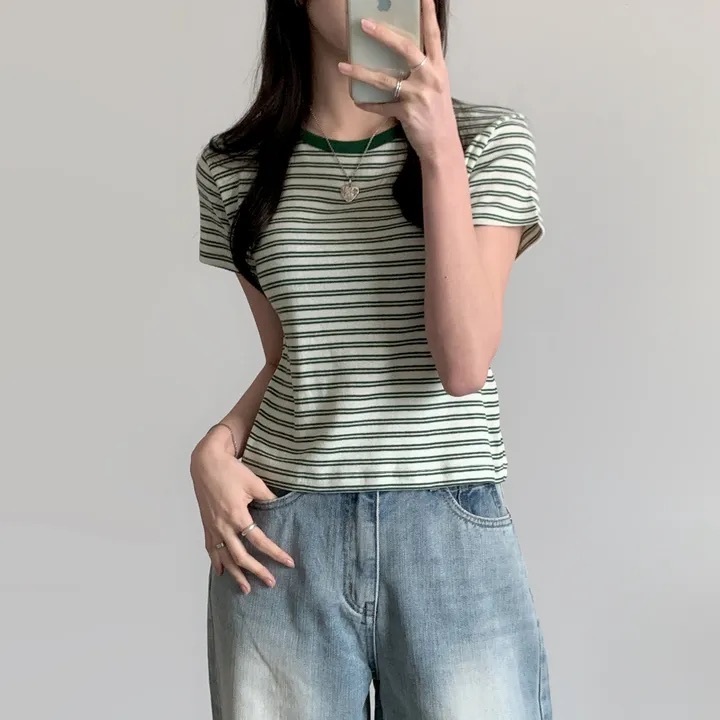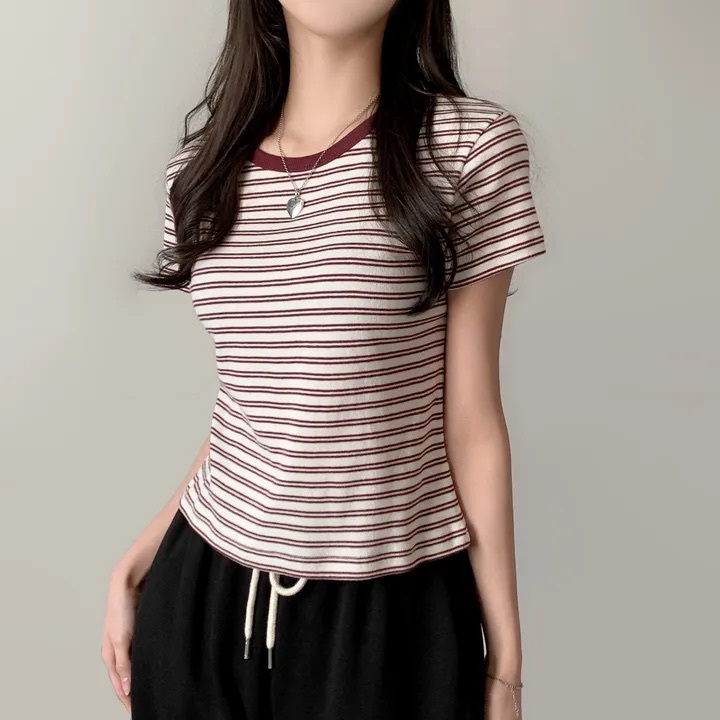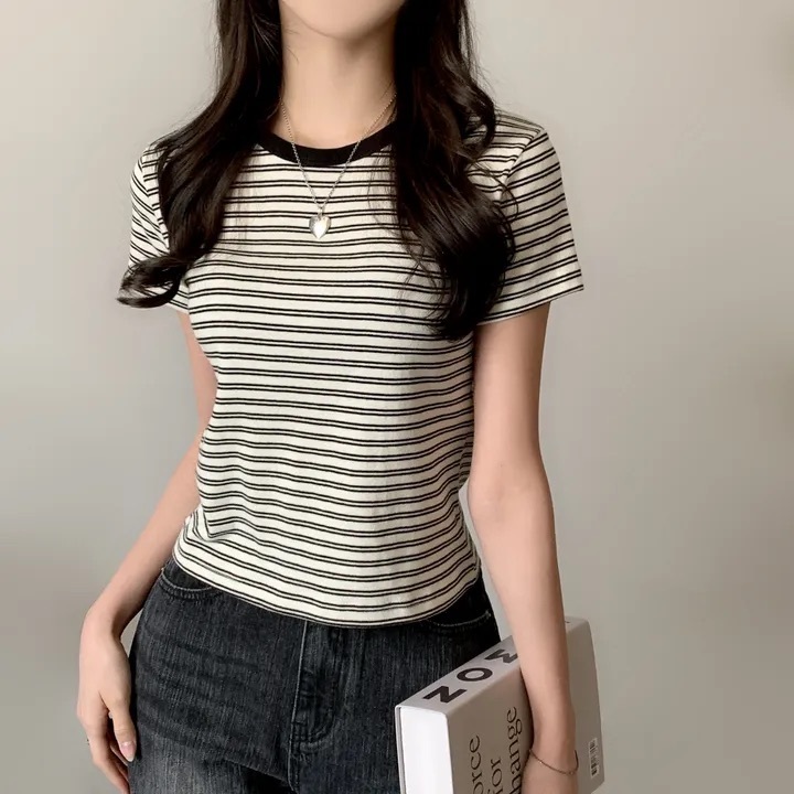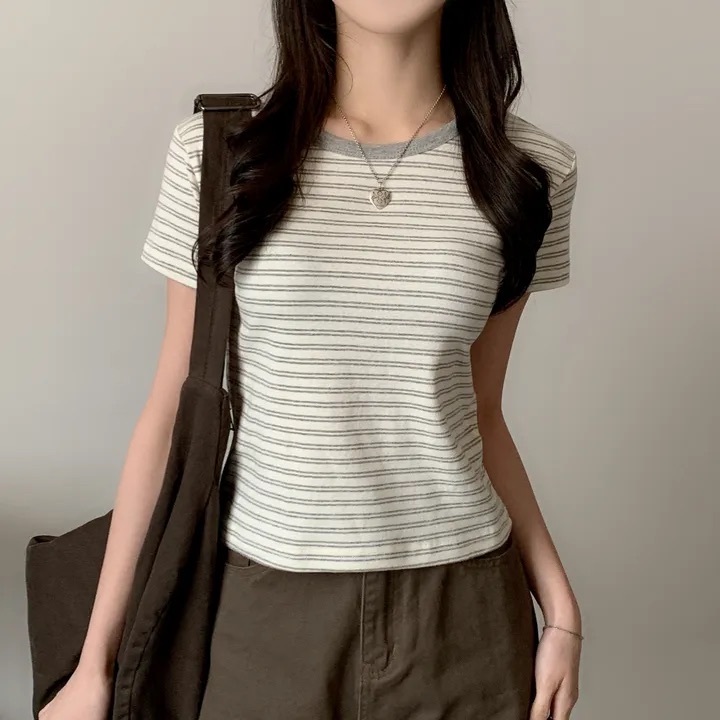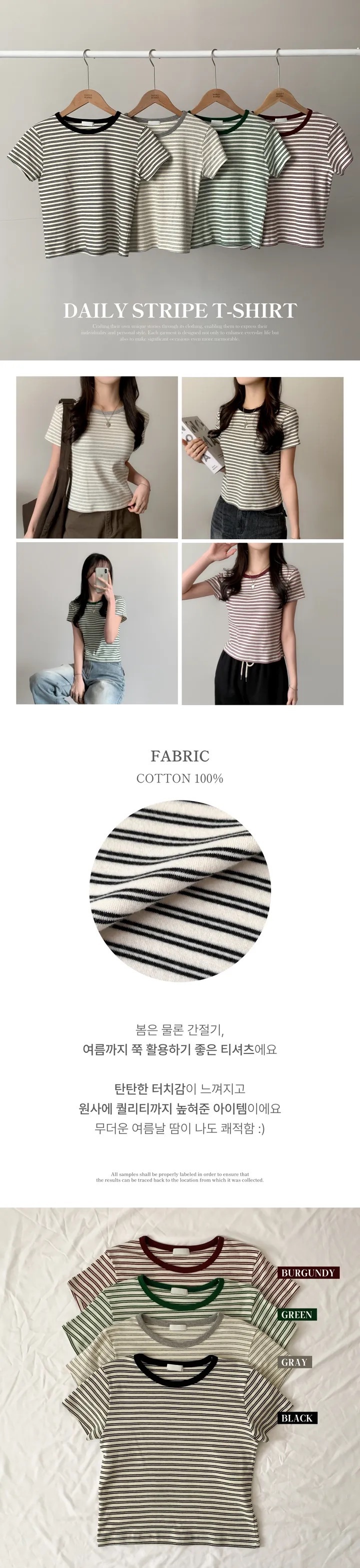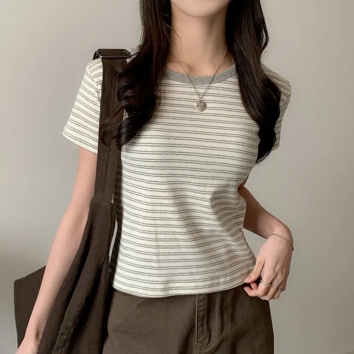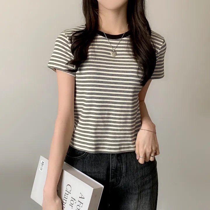 【優惠價預訂】韓國棉質配色間條TEE(4色)