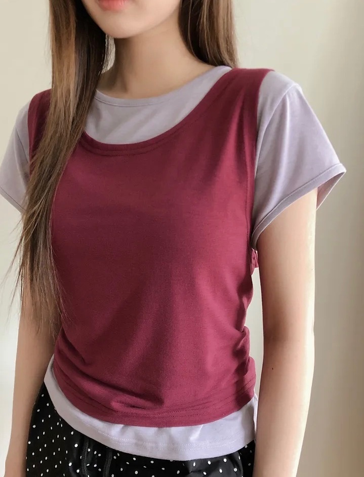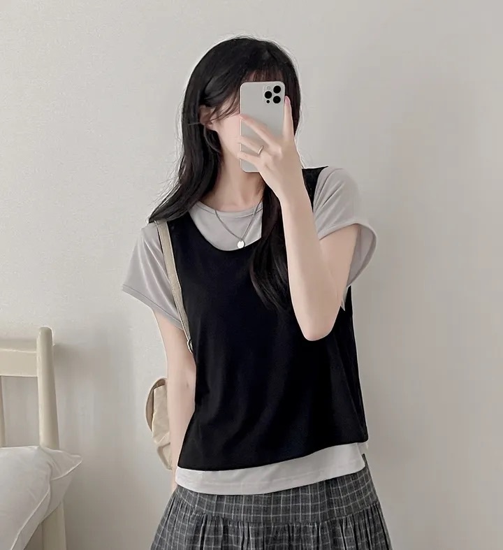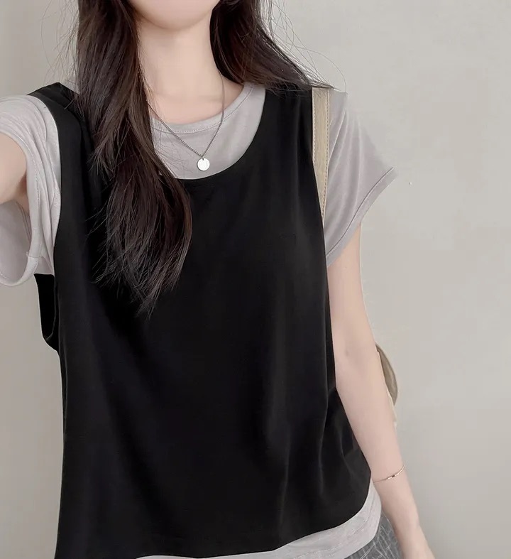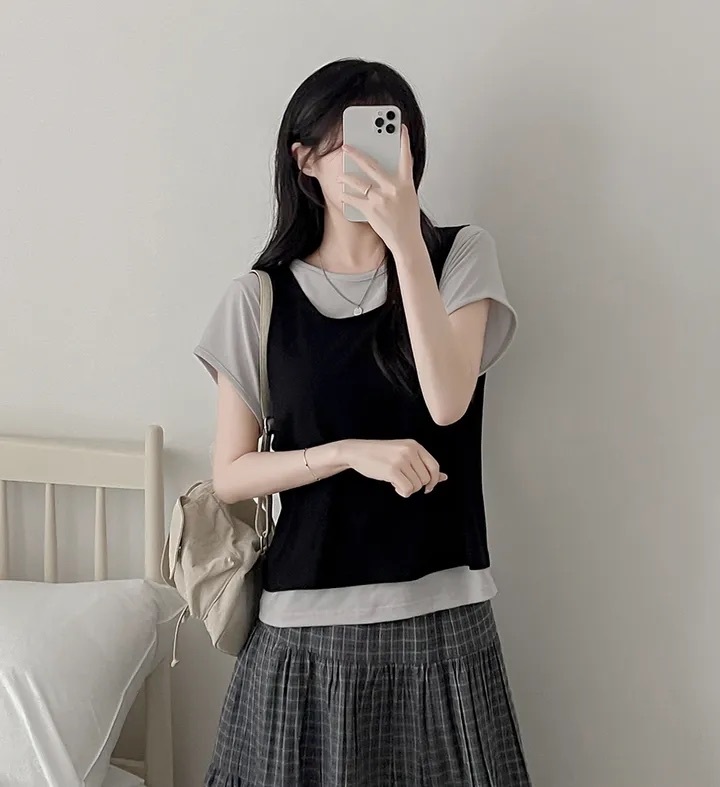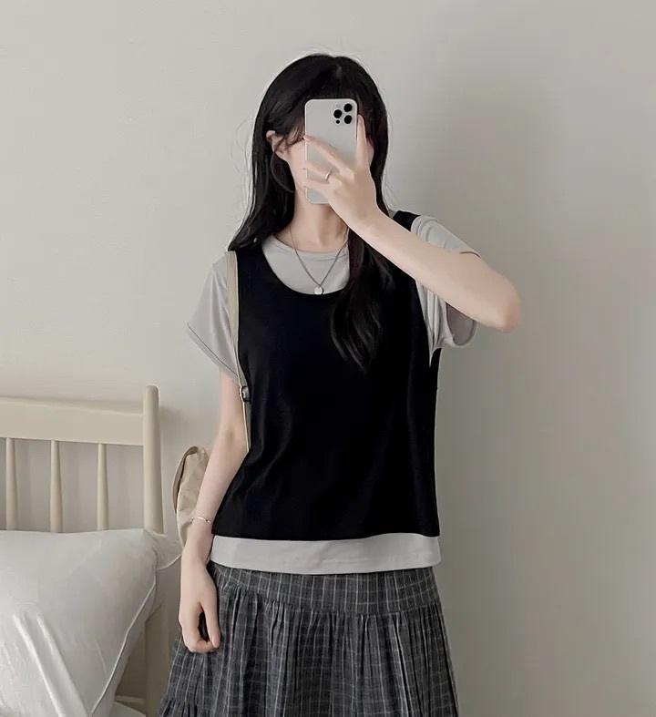 【8.4 完額外95折優惠預訂】韓國 Layered 假兩件背心 Tee(4色)