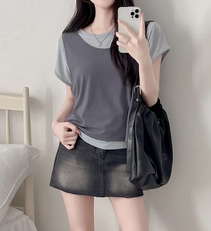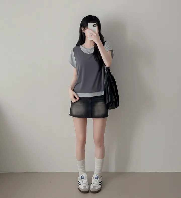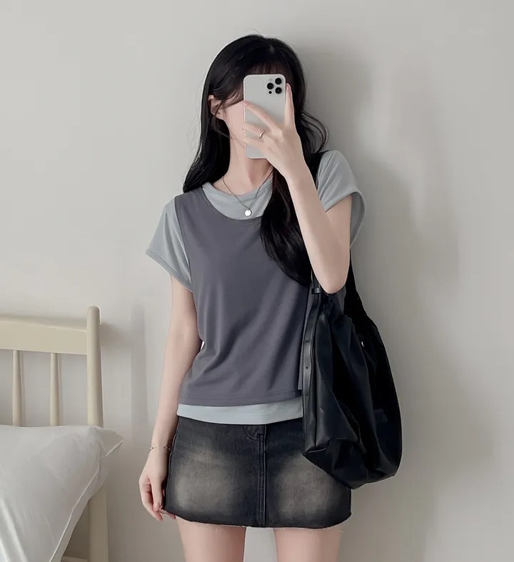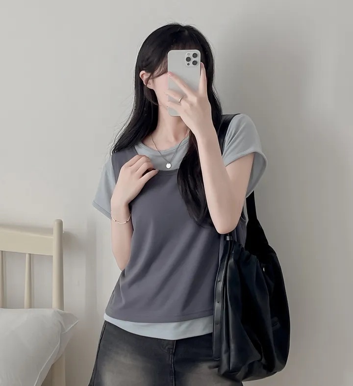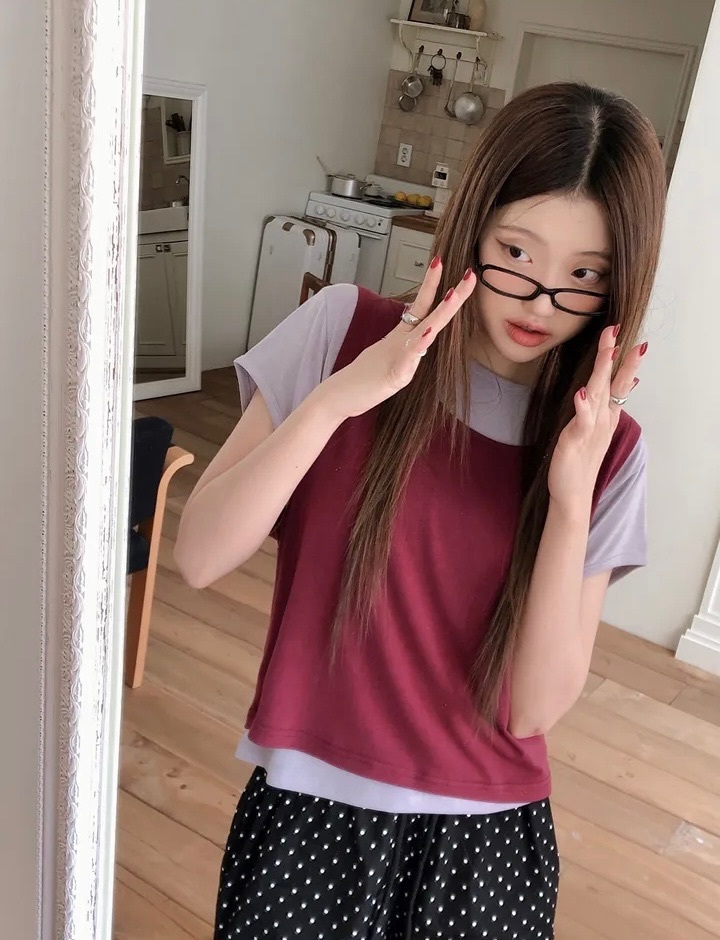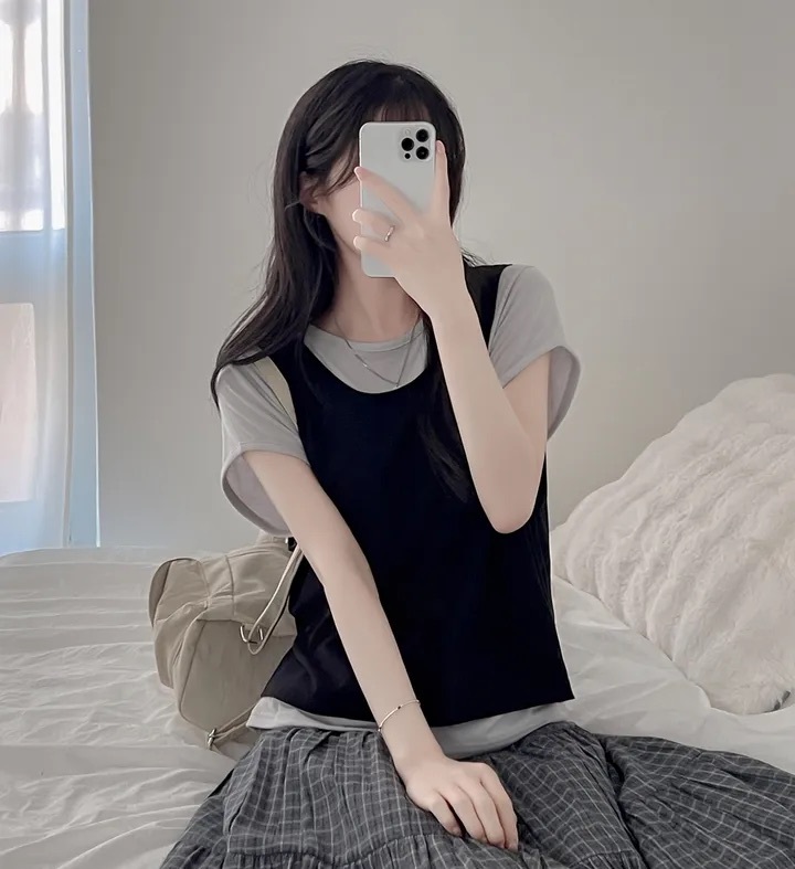 【8.4 完額外95折優惠預訂】韓國 Layered 假兩件背心 Tee(4色)