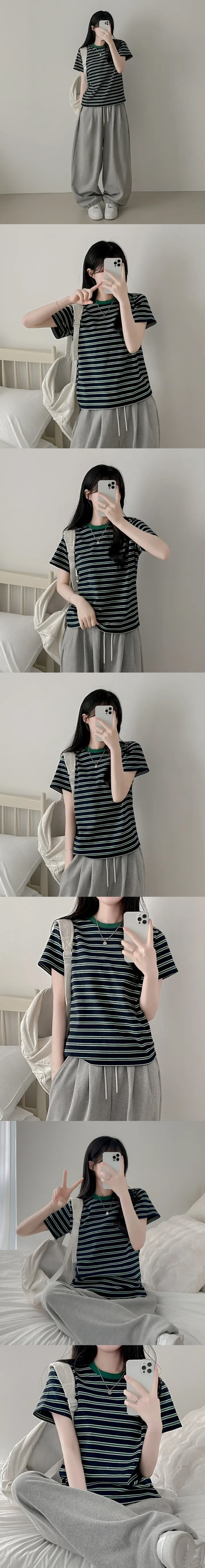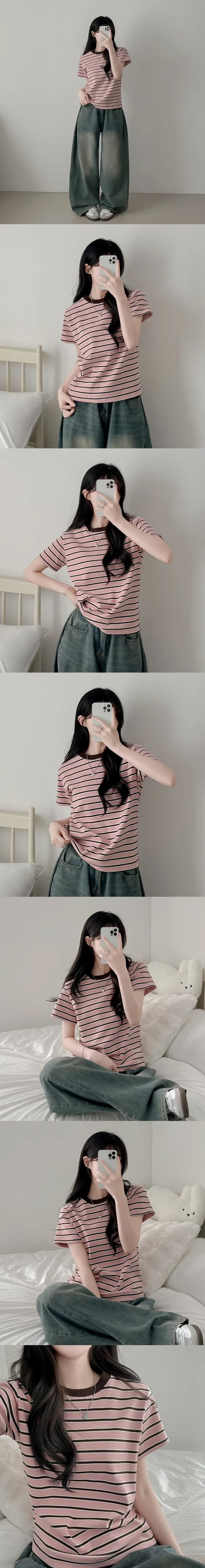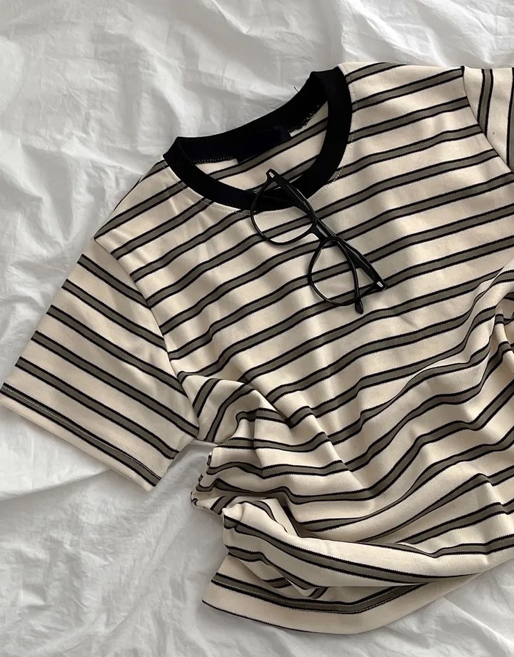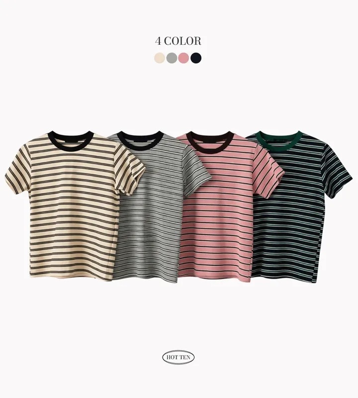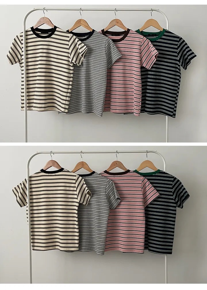 【8.4 完額外95折優惠預訂】韓國細橫間撞色領短袖TEE(4色)