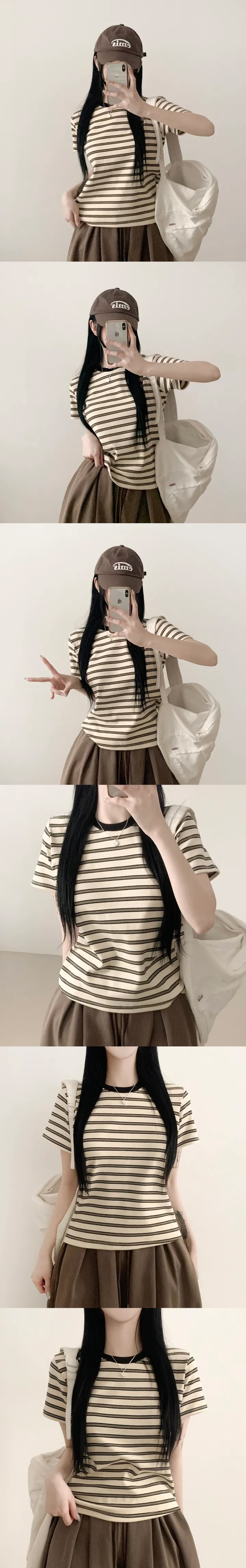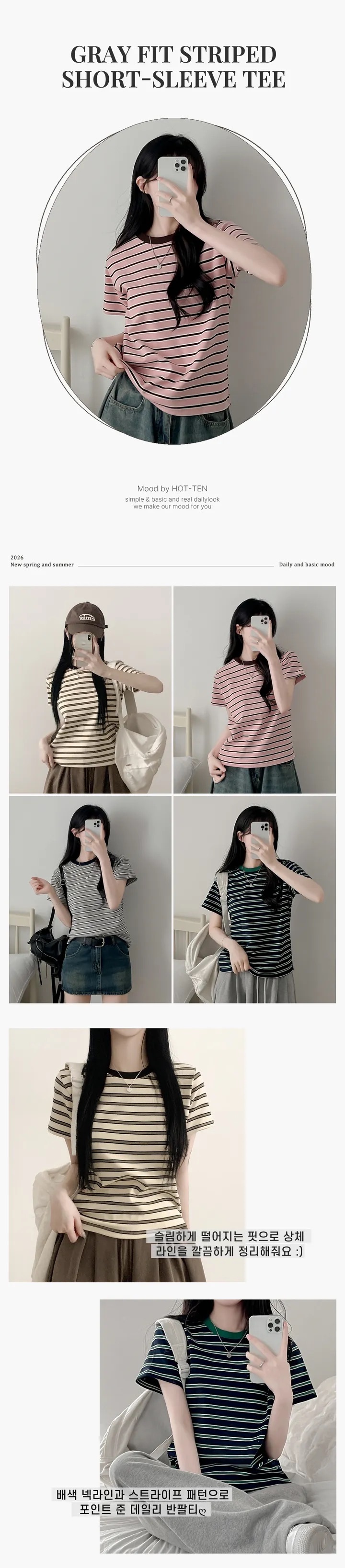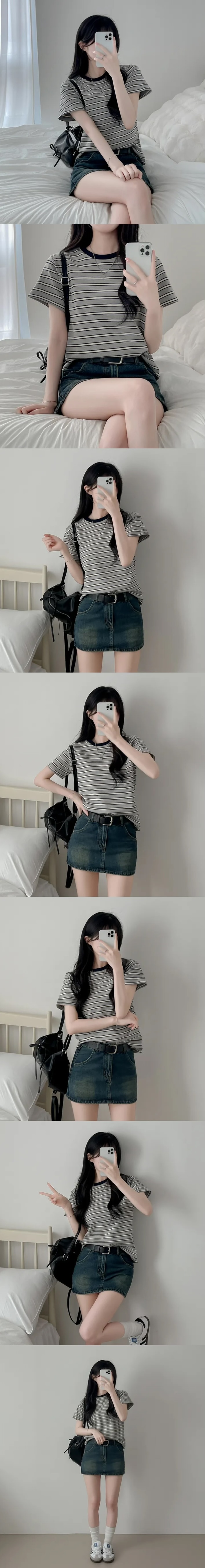 【8.4 完額外95折優惠預訂】韓國細橫間撞色領短袖TEE(4色)