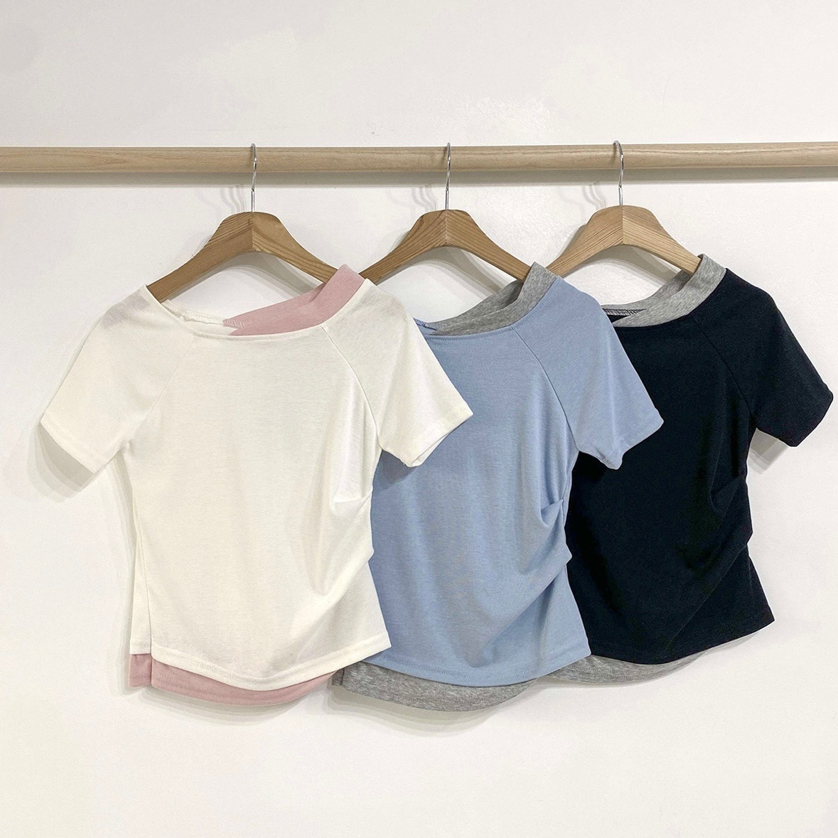 【優惠價現貨】韓國拼色彈性短袖TOP(3色)