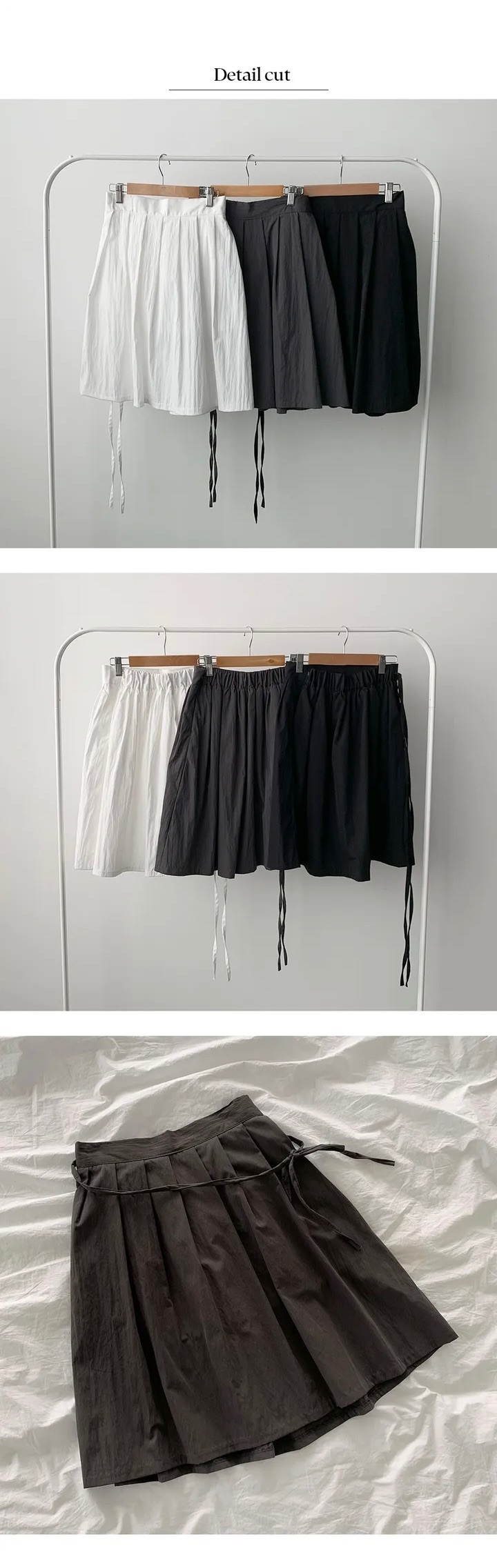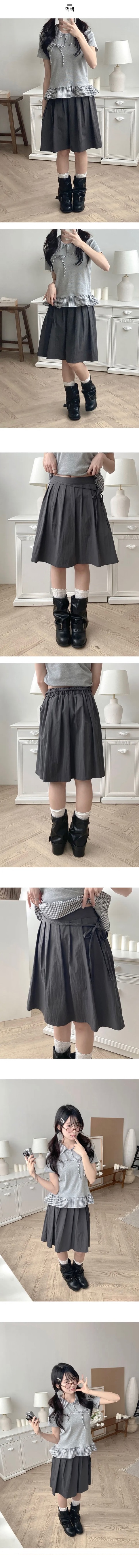 【15.4 完額外95折優惠!首批優惠價預訂】韓國清新日系側綁帶皺摺中長裙(3色)