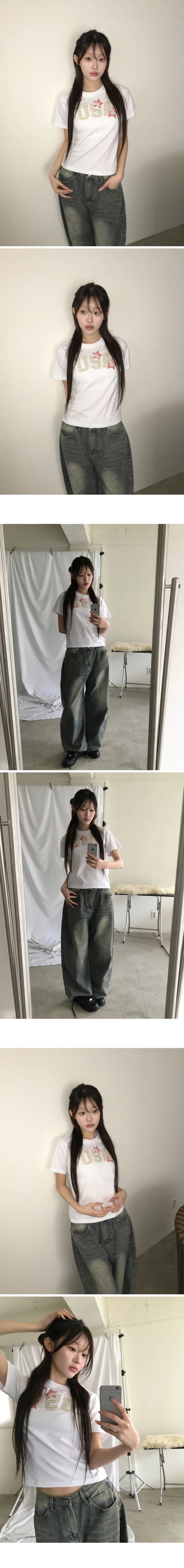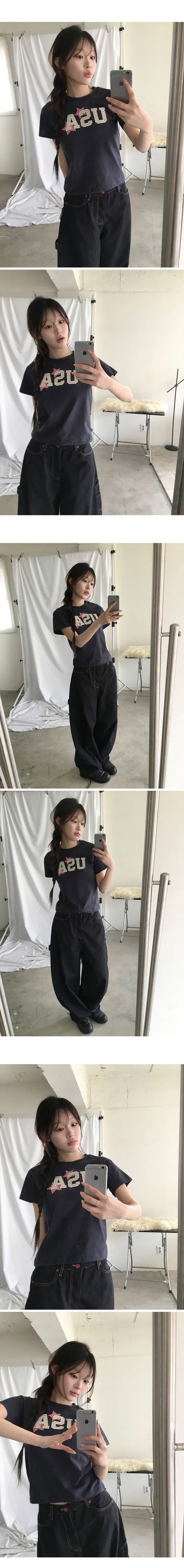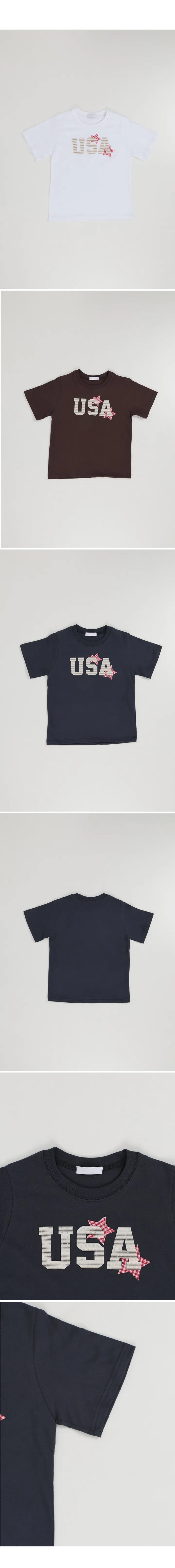 【15.4 完額外95折優惠!首批優惠價預訂】韓國美式復古USA字母星星拼布TEE(3色)