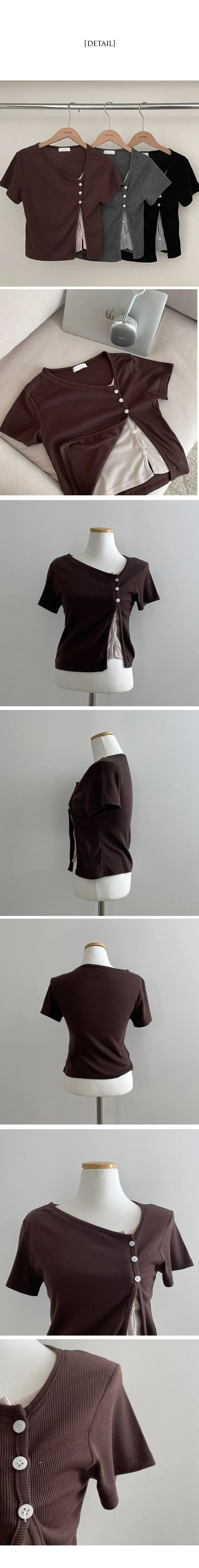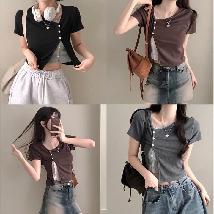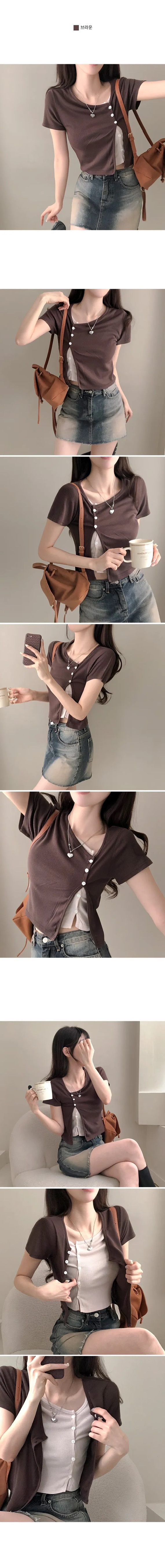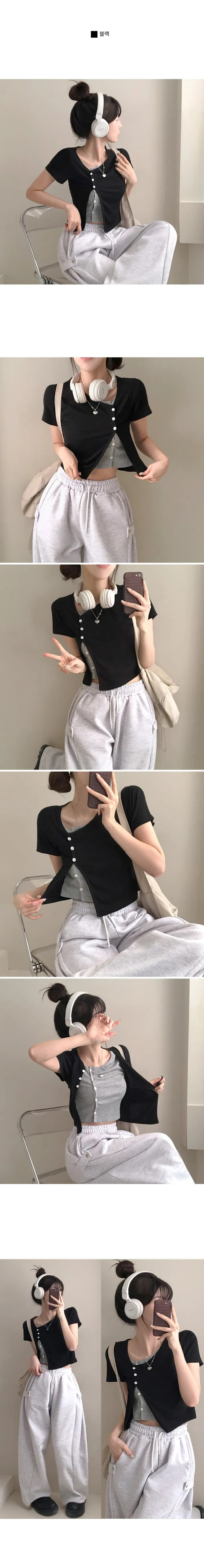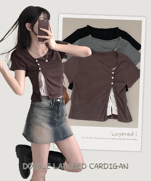 【優惠預訂】韓國雙層疊穿鈕扣羅紋短袖(3色)