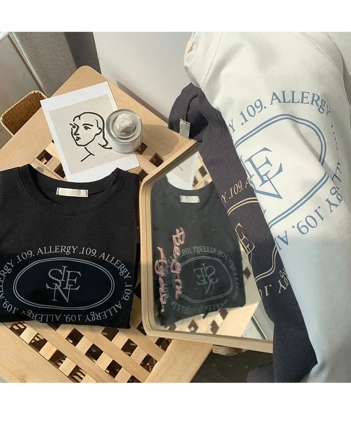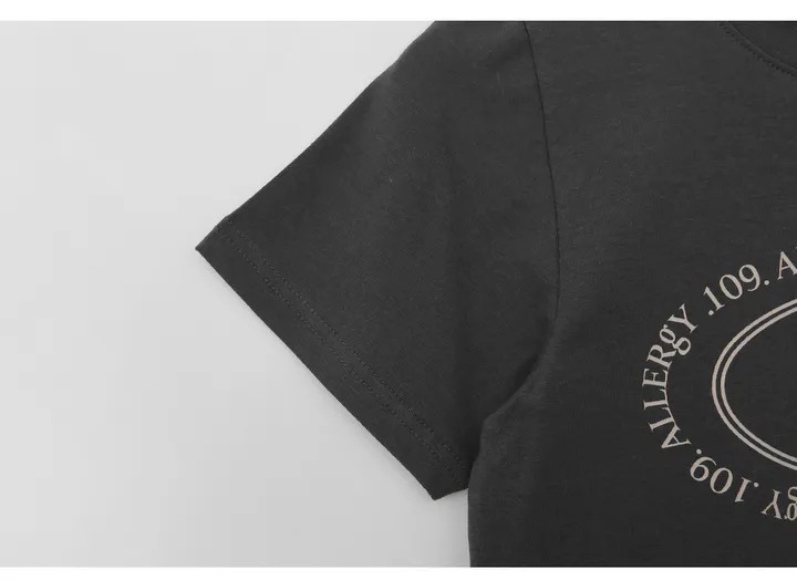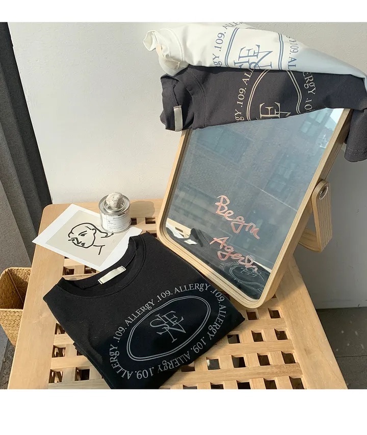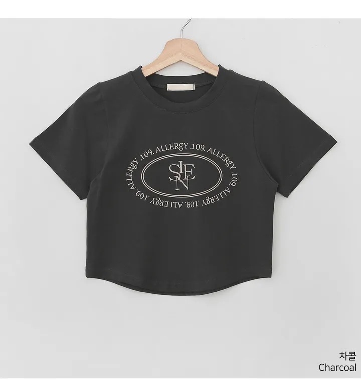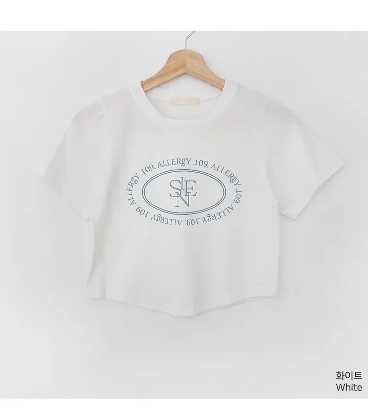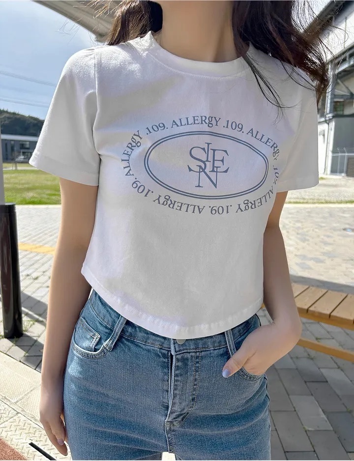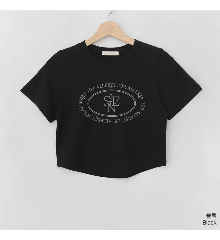 【優惠預訂】韓國橢圓形印花弧形下擺短袖TEE(3色)
