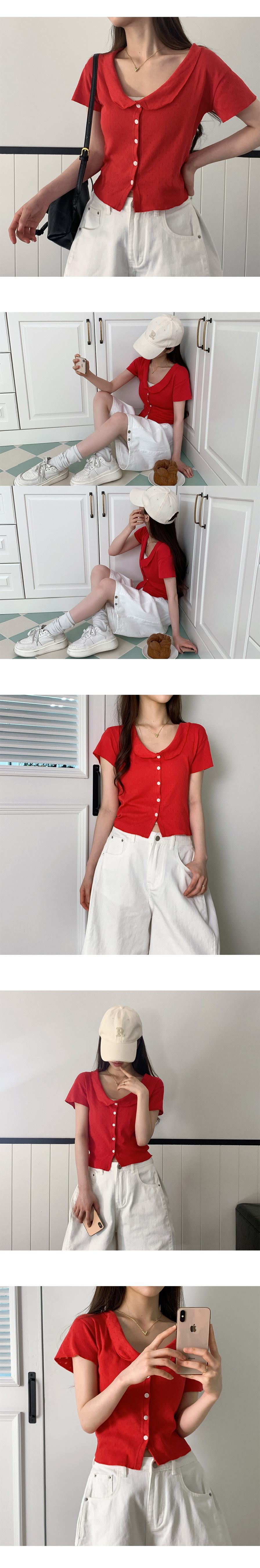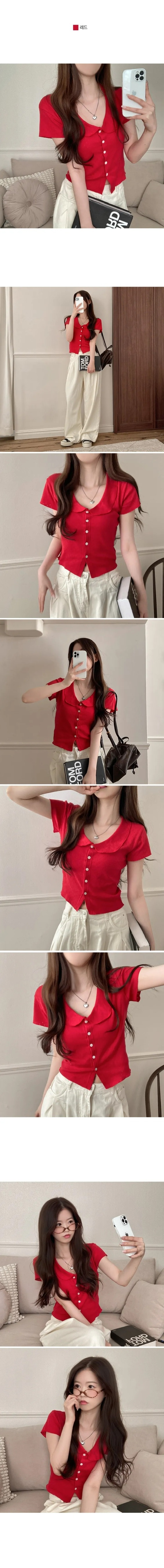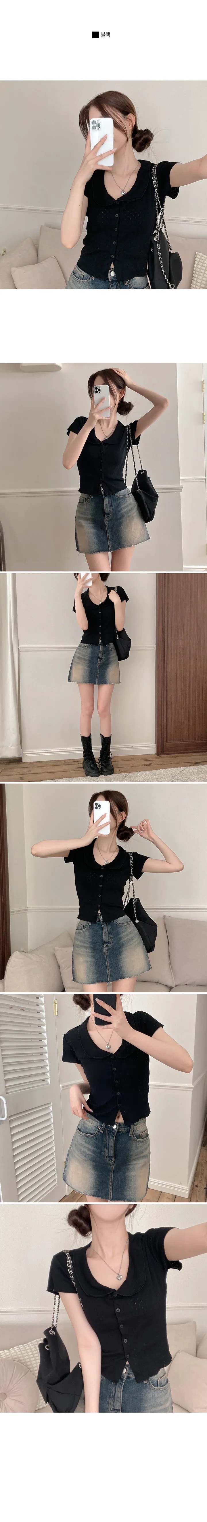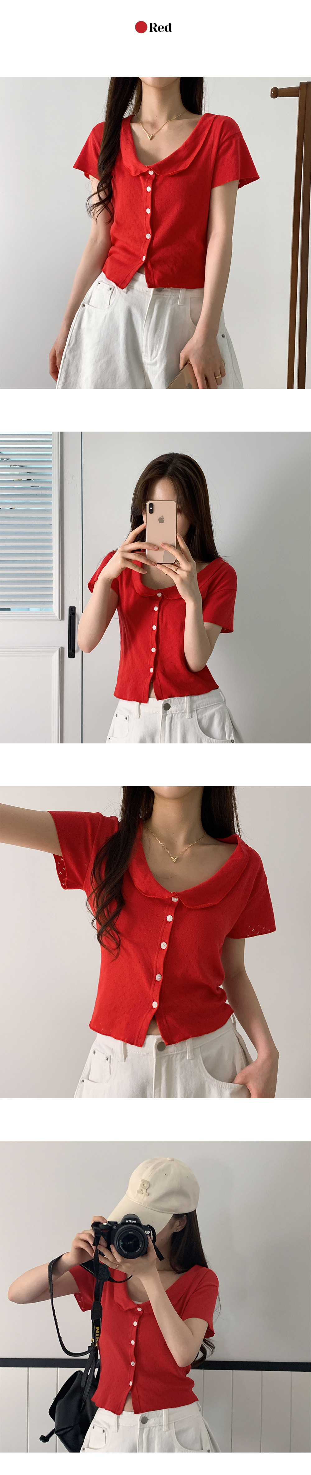 【優惠現貨】韓國娃娃領通花鈕扣TOP(5色)
