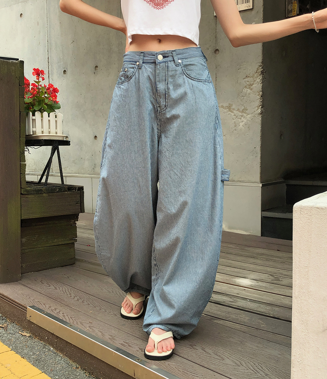 【優惠預訂】韓國直紋氣球褲
