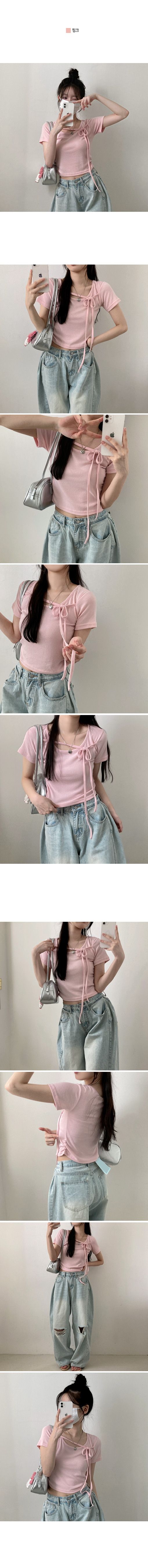 【優惠現貨】韓國短袖設計感綁帶上衣(5色)