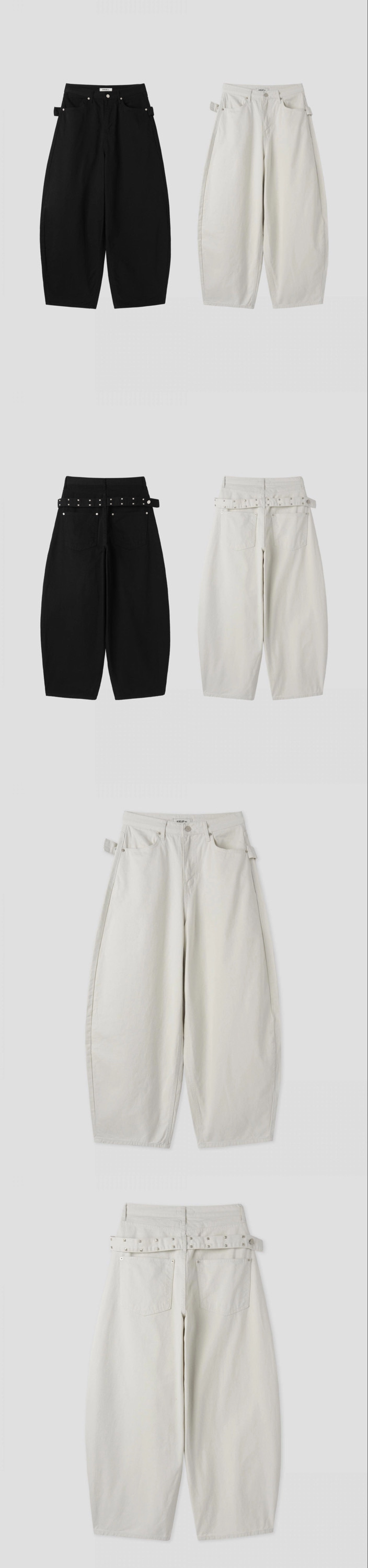 【優惠價預訂】25FW人氣批發款!韓國後鍋釘腰帶彎刀褲(2色)