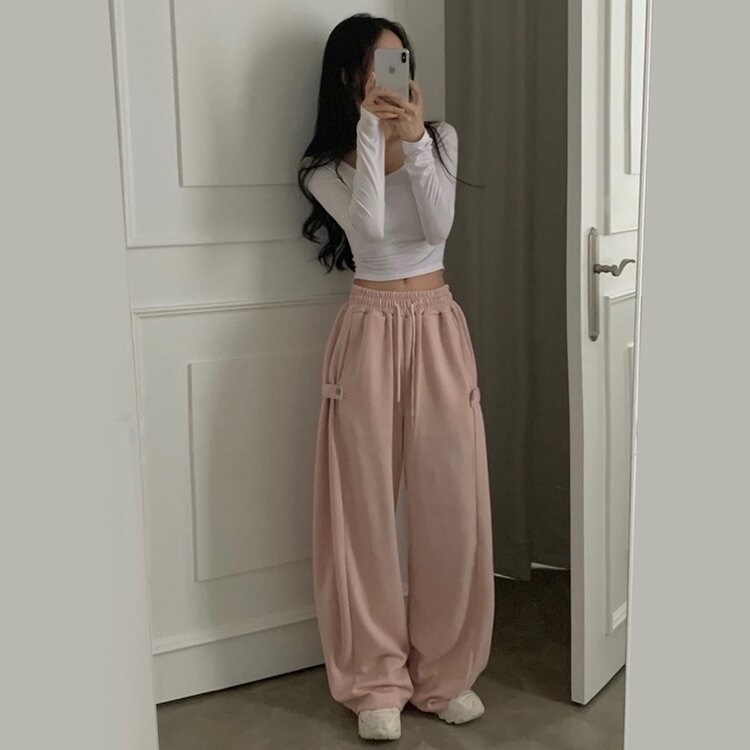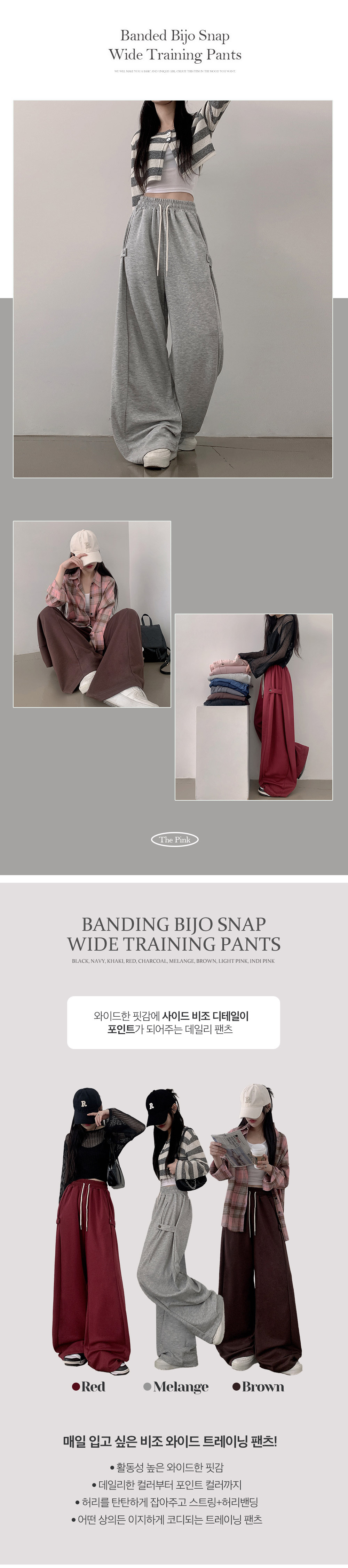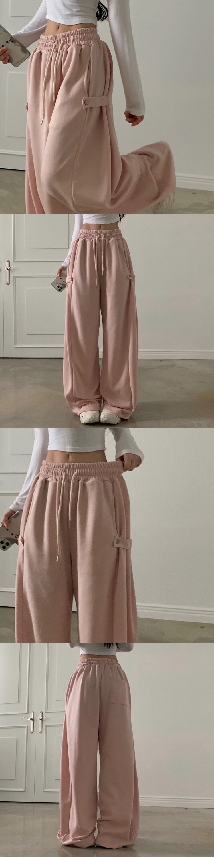 【優惠預訂】韓國側邊啪鈕寬鬆運動長褲(9色)