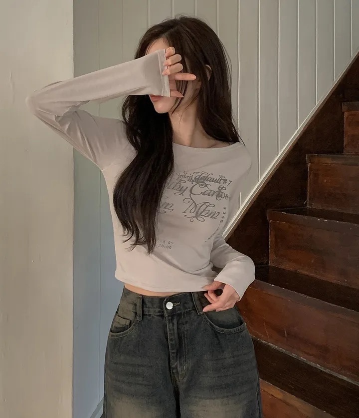 【優惠價預訂】韓國印花寬領長袖TEE(3色)