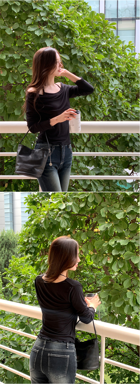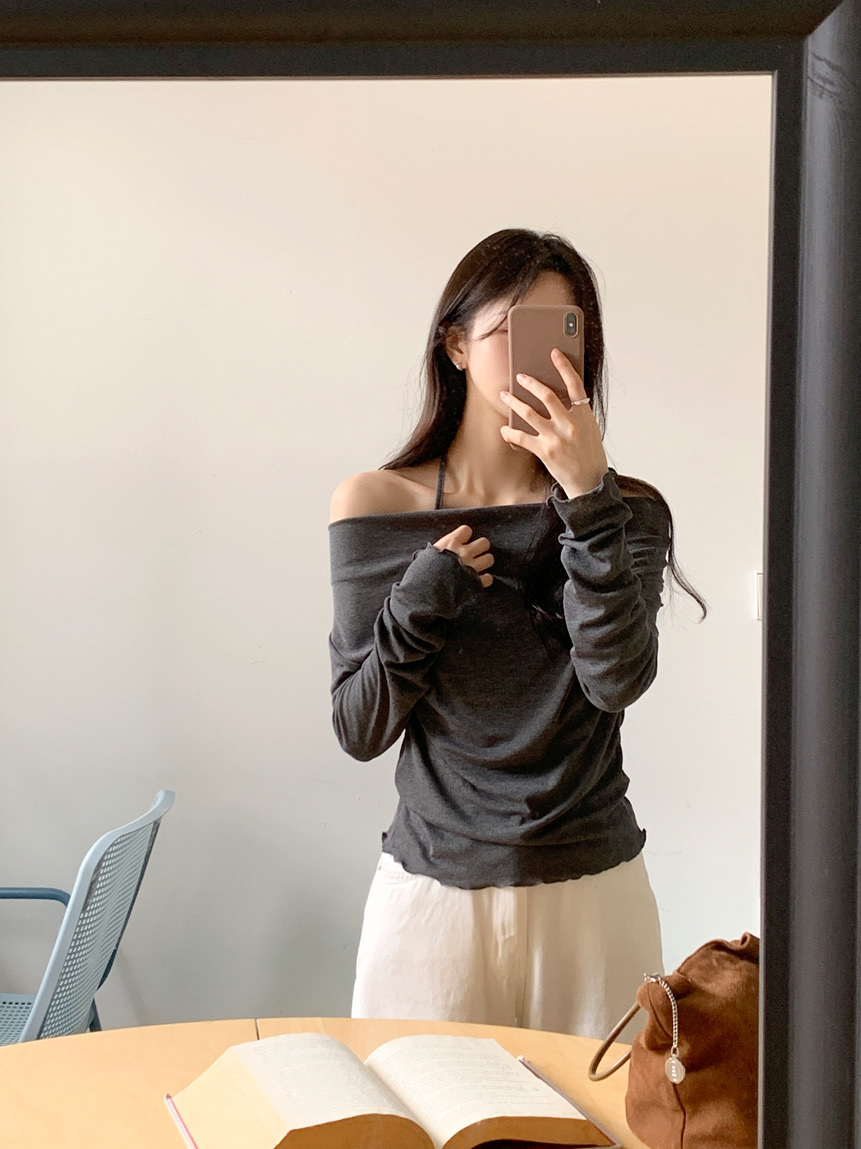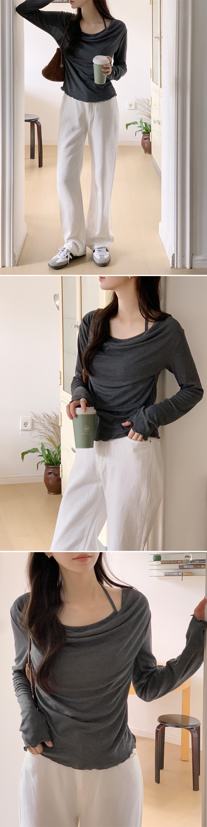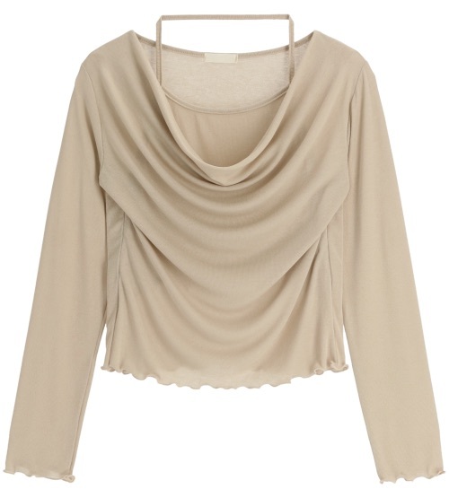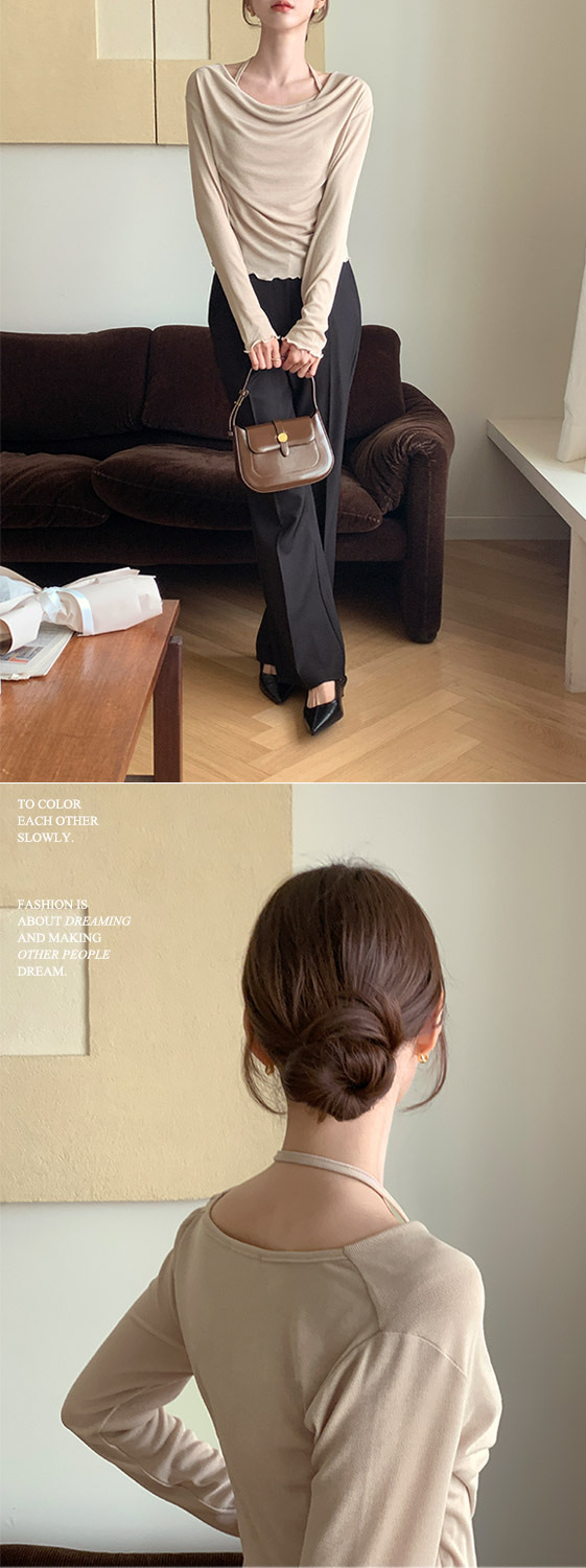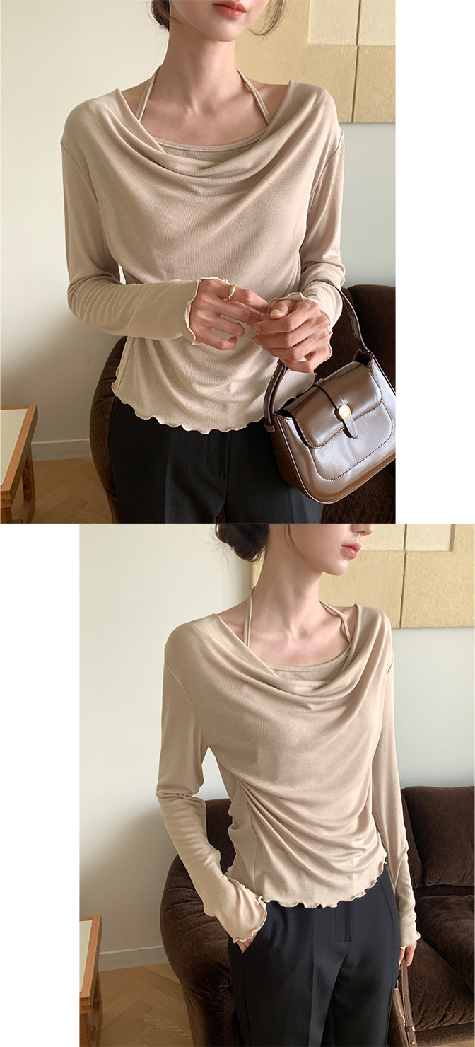 【優惠價預訂】韓國垂感皺摺掛頸波浪紋長袖上衣(5色)