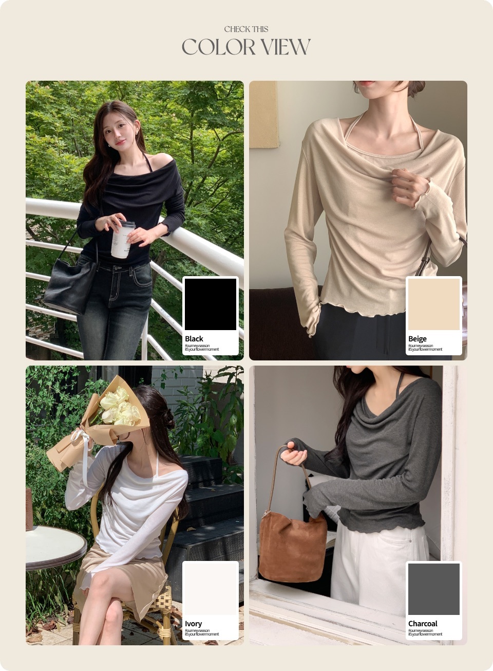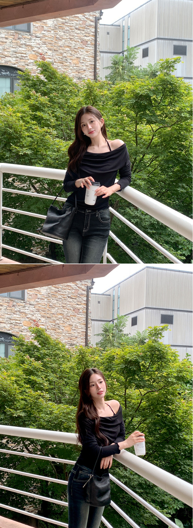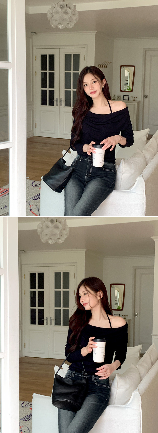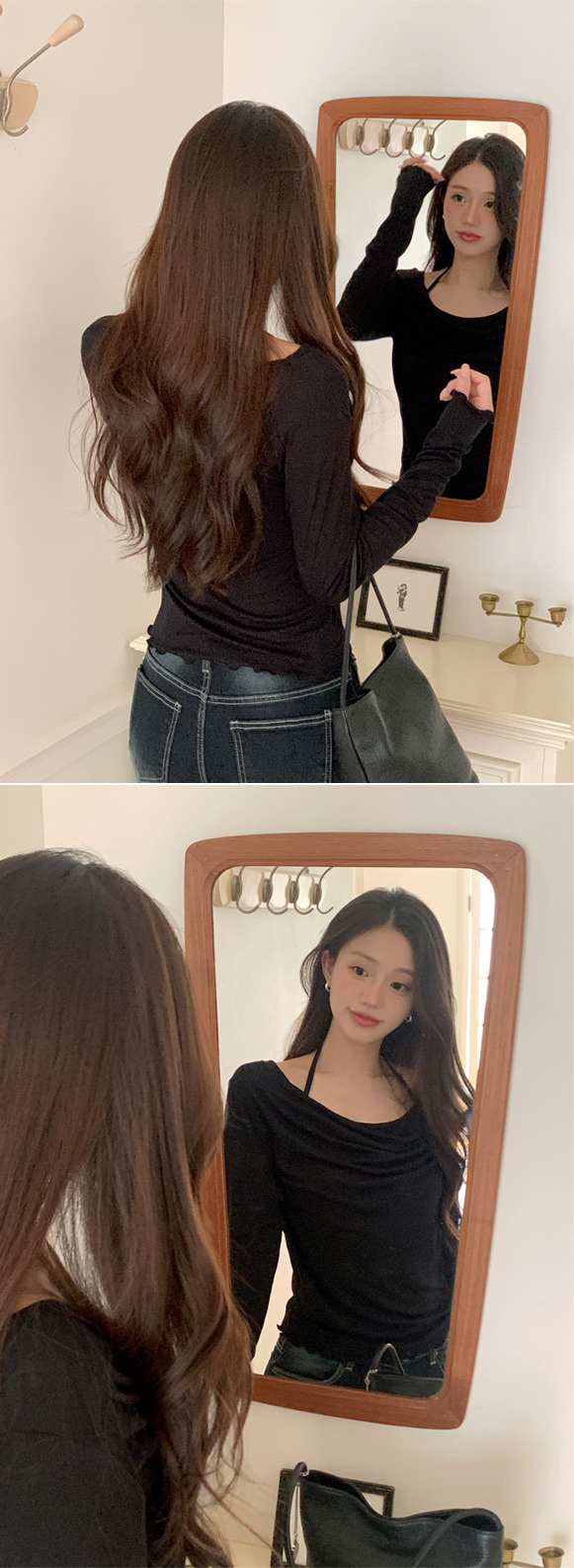 【優惠價預訂】韓國垂感皺摺掛頸波浪紋長袖上衣(5色)