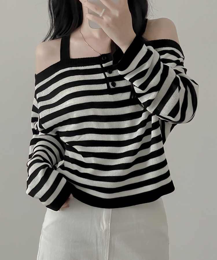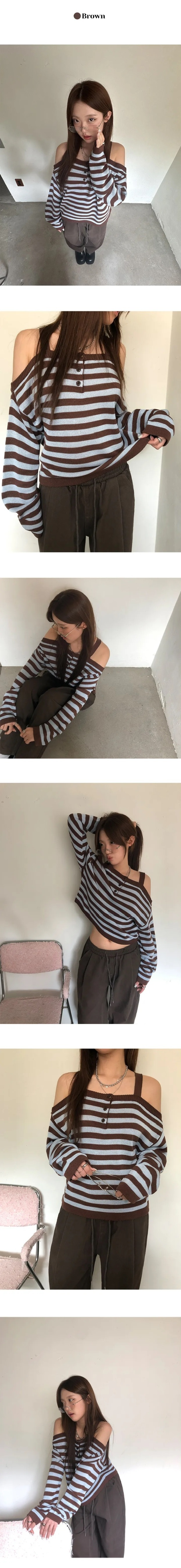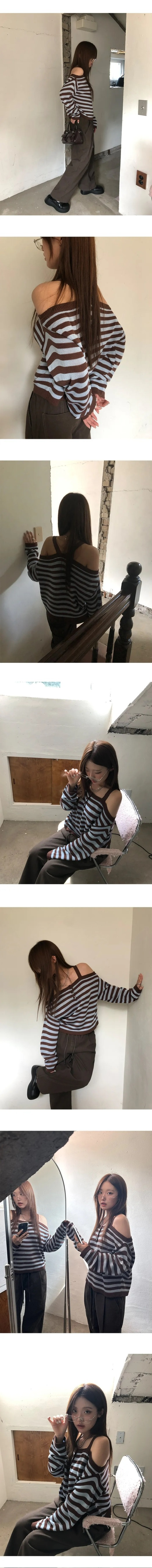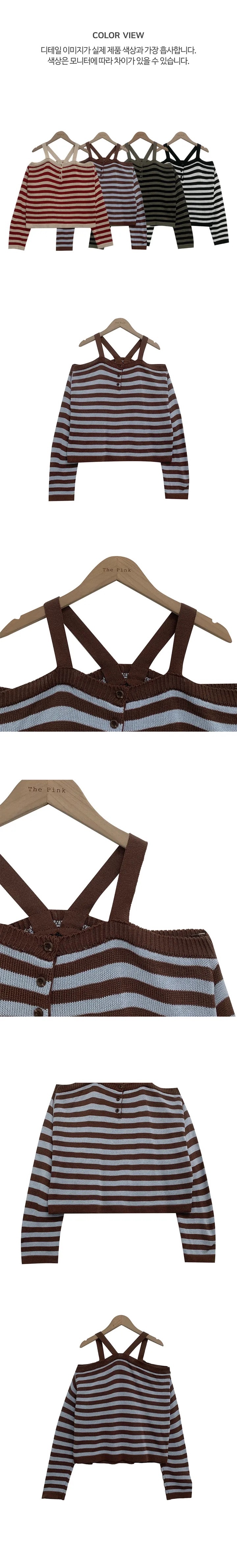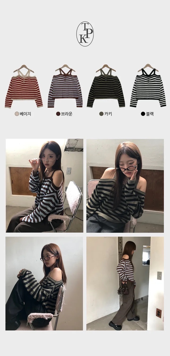 【優惠價預訂】韓國吊帶露肩間條針織上衣(4色)