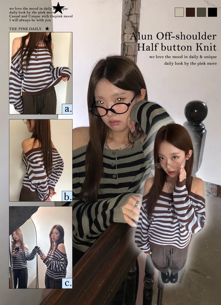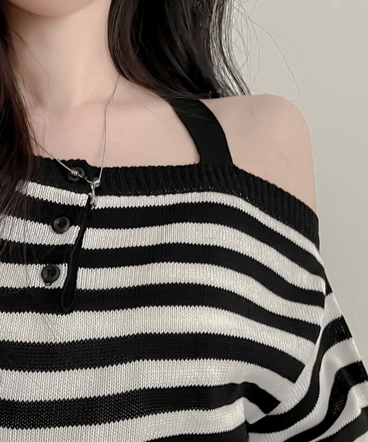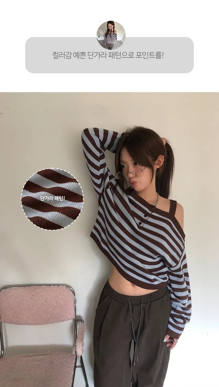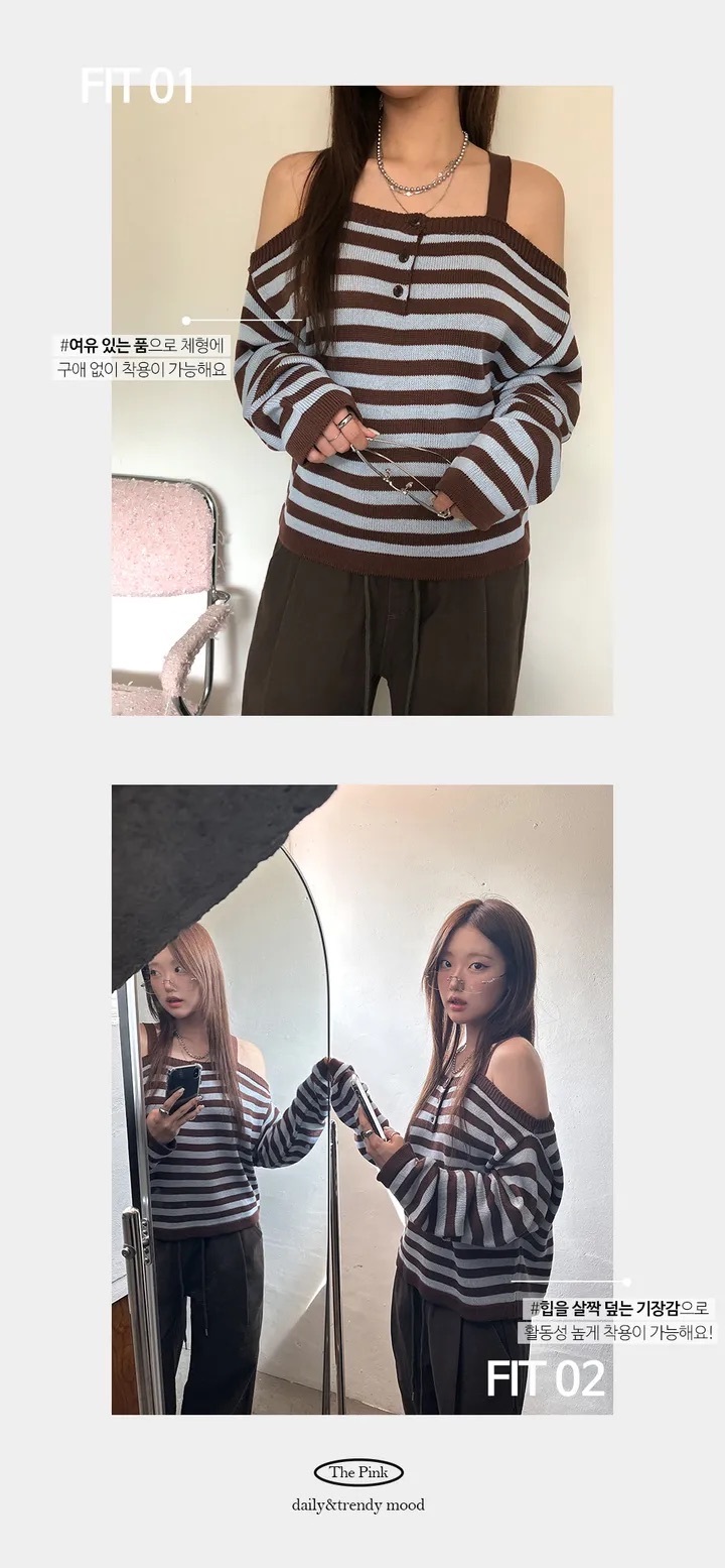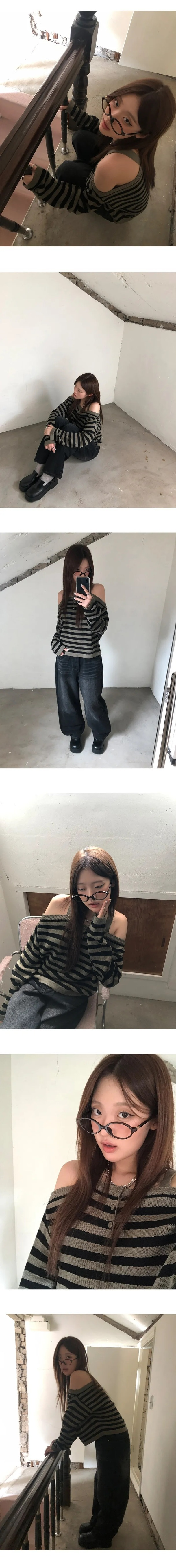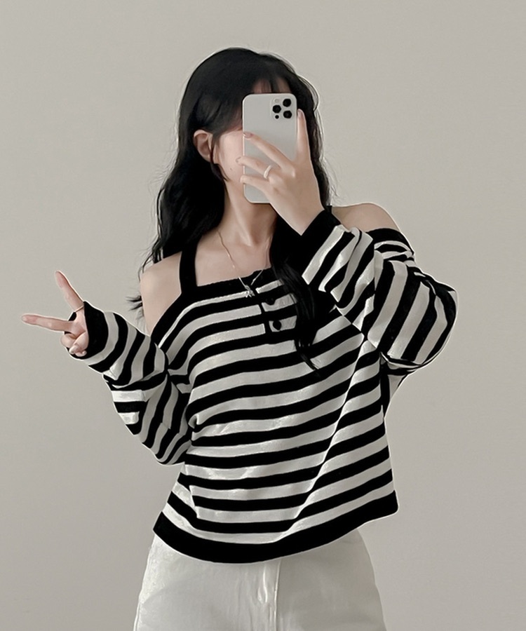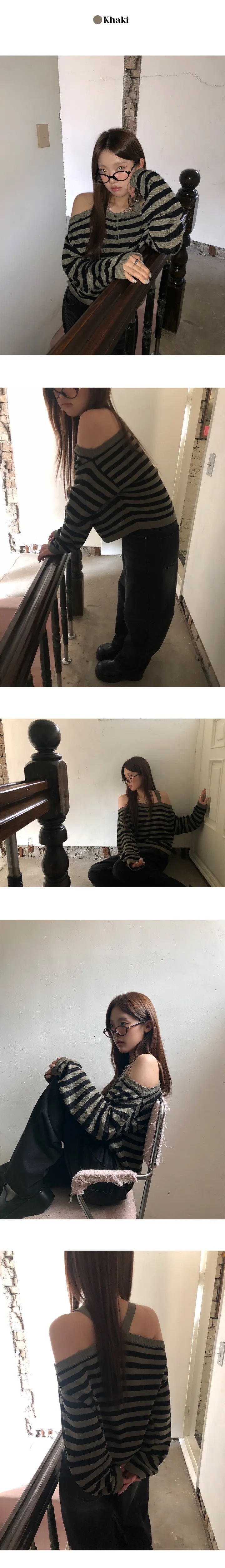 【優惠價預訂】韓國吊帶露肩間條針織上衣(4色)