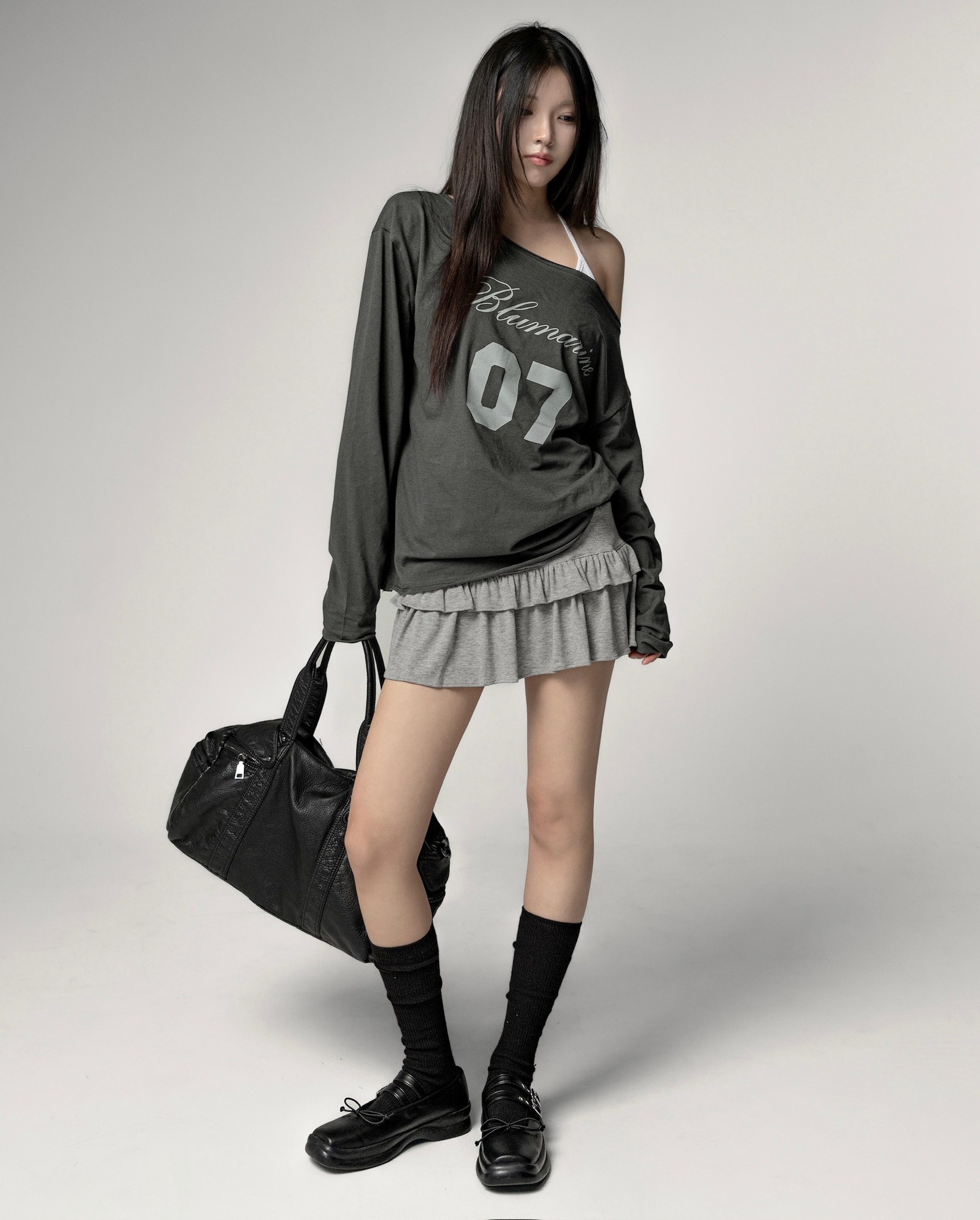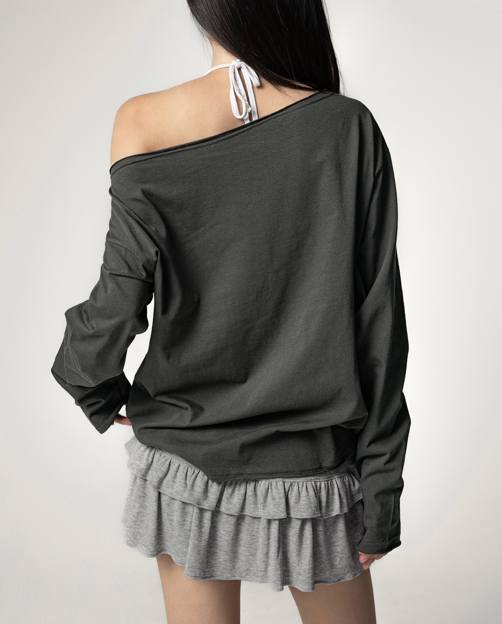 【優惠價預訂】長袖款!韓國鬆身07露肩TEE(4色)