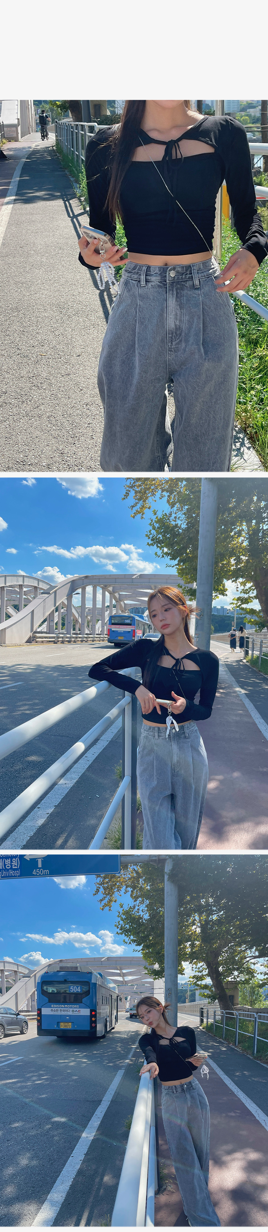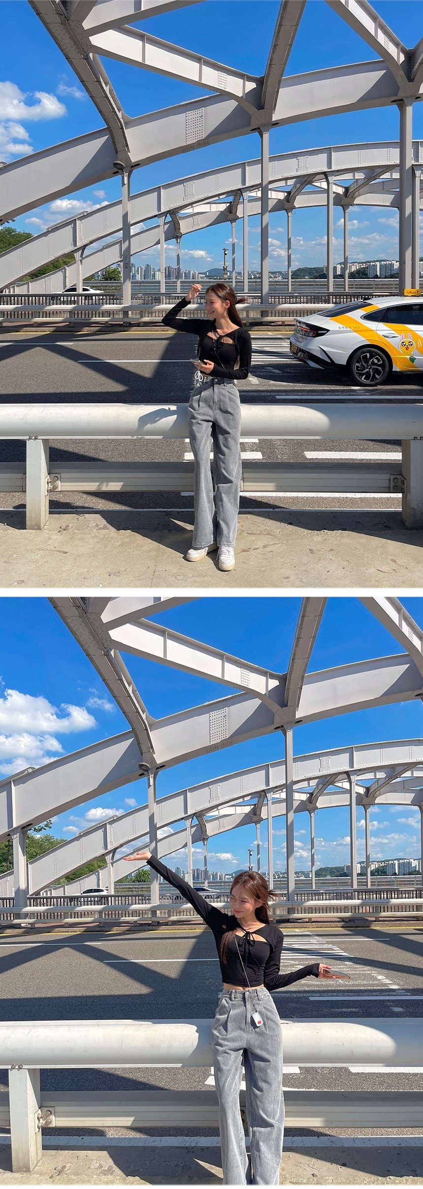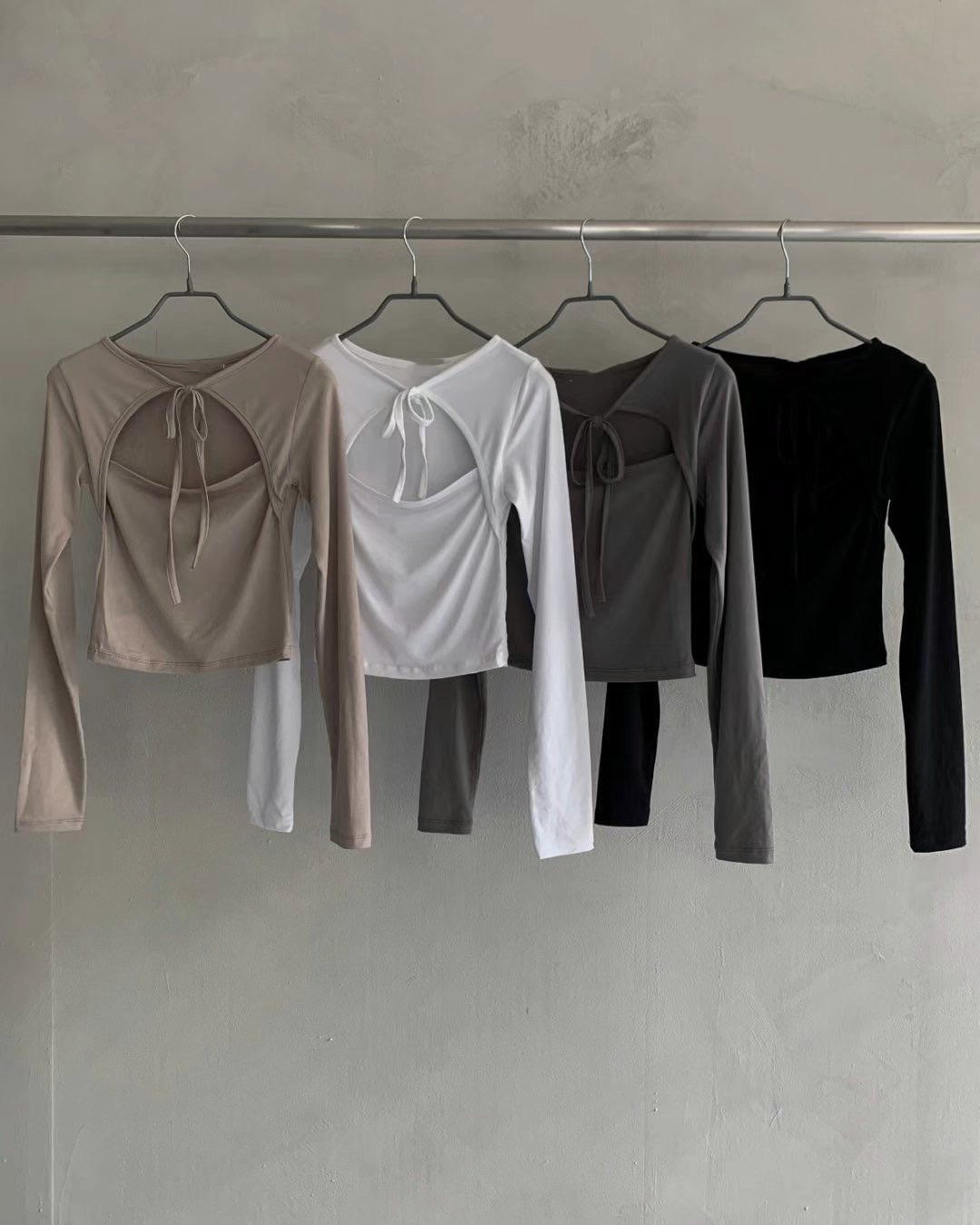 【優惠預訂】韓國胸前縷空貼身上衣(4色)