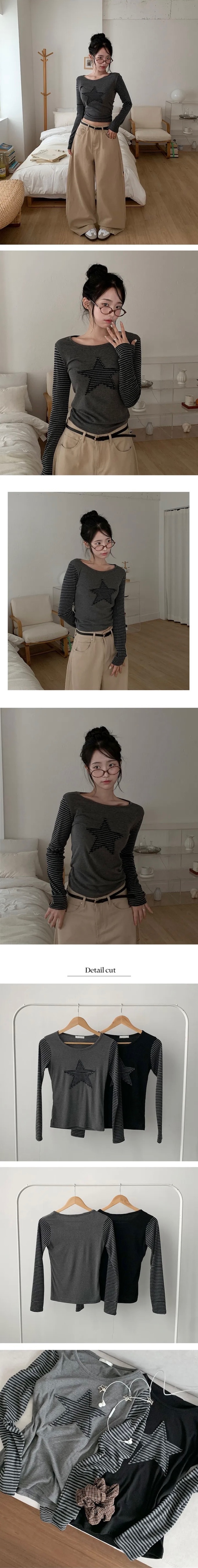 【優惠價預訂】韓國星星間條長袖TEE(2色)