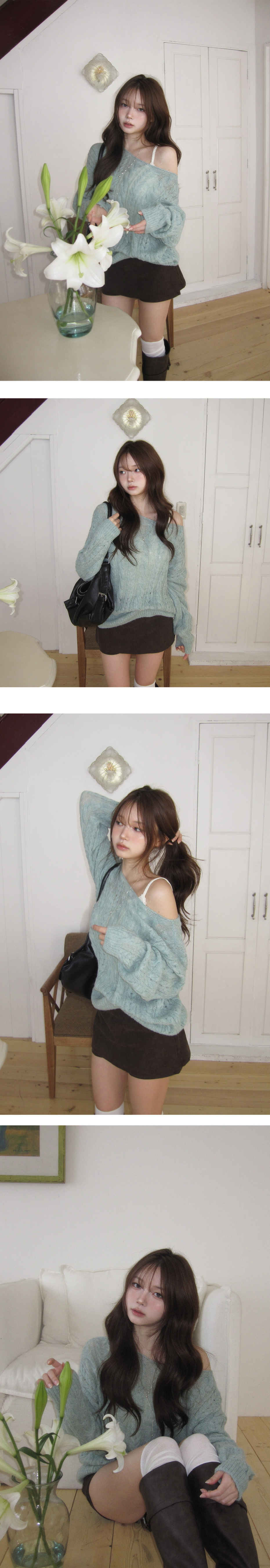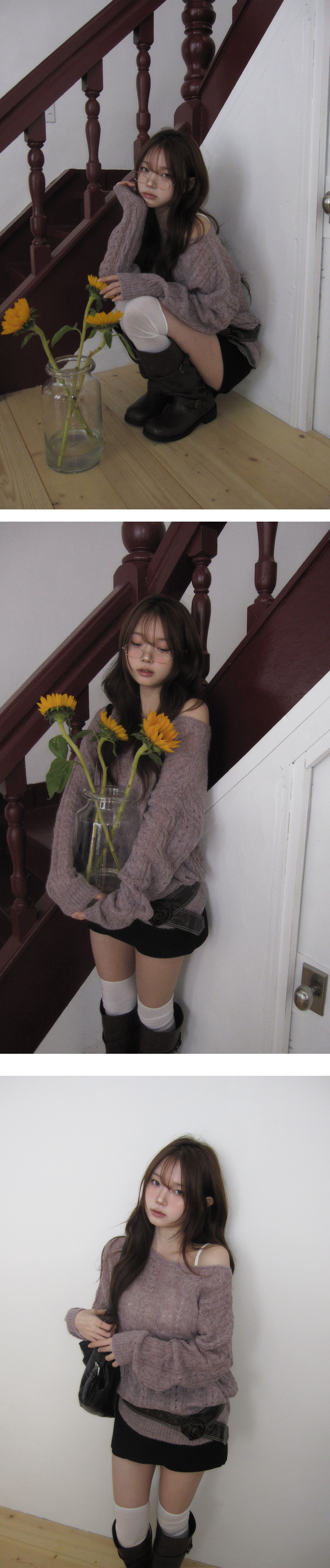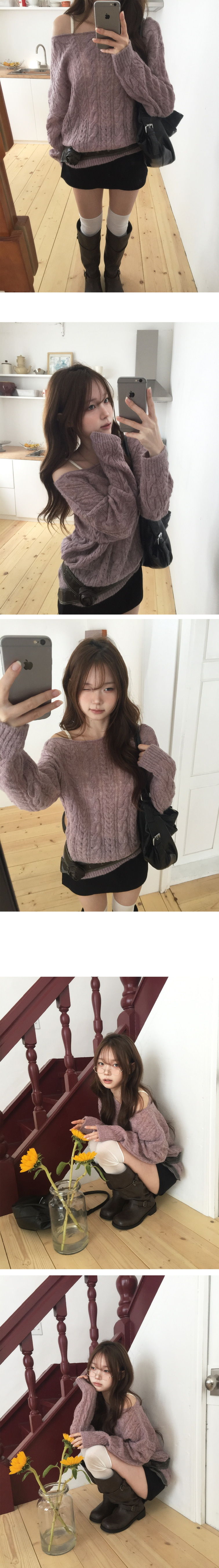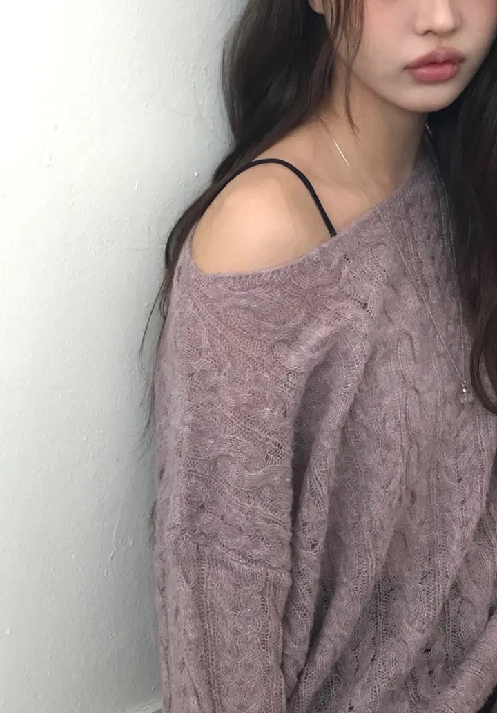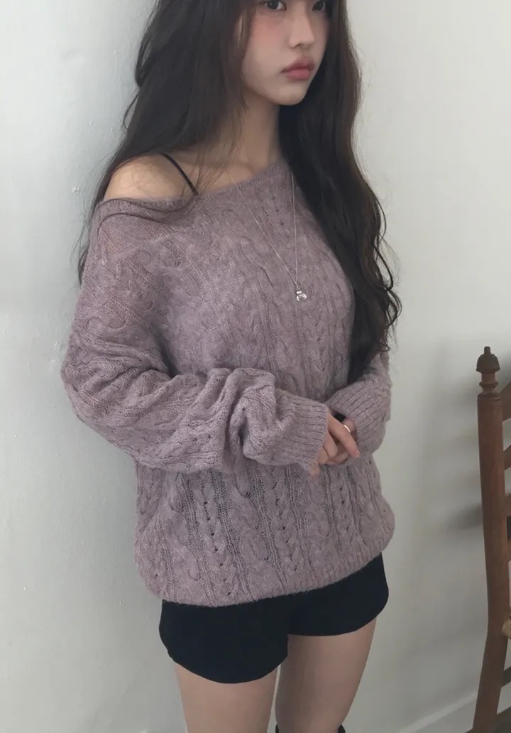 【優惠預訂】韓國麻花寬領羊毛針織上衣(5色)