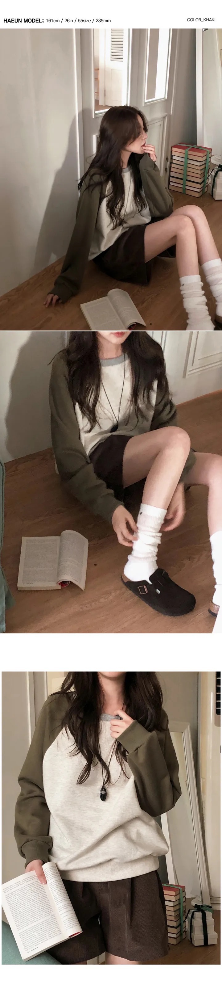 【優惠預訂】韓國牛角拼色衛衣(3色)