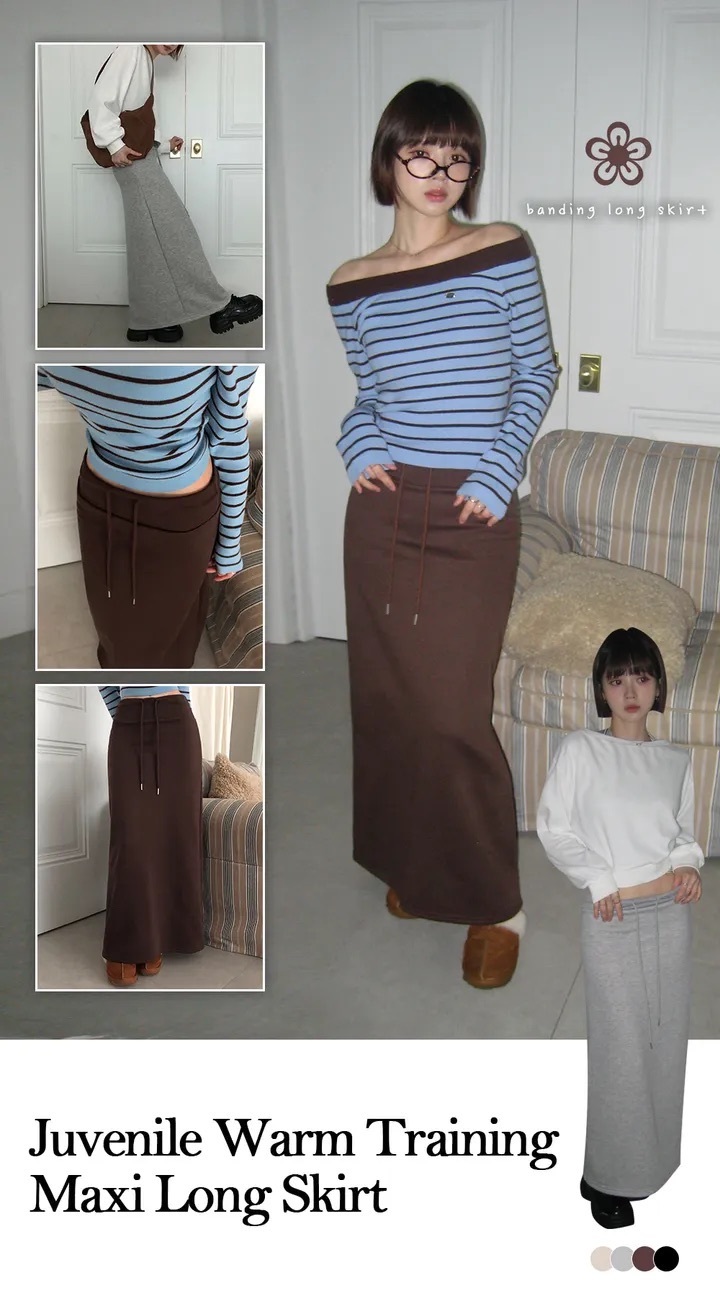 【優惠預訂】韓國絨毛底棉質長裙(4色)